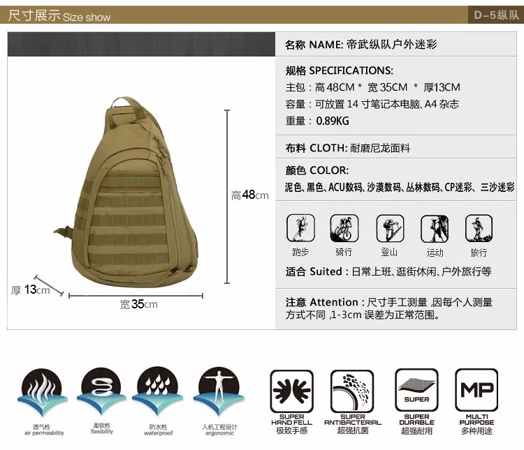 Mochila de pecho triangular impermeable para hombre, paquete de eslinga para deportes al aire libre, A4, un solo hombro, grande, cruzado