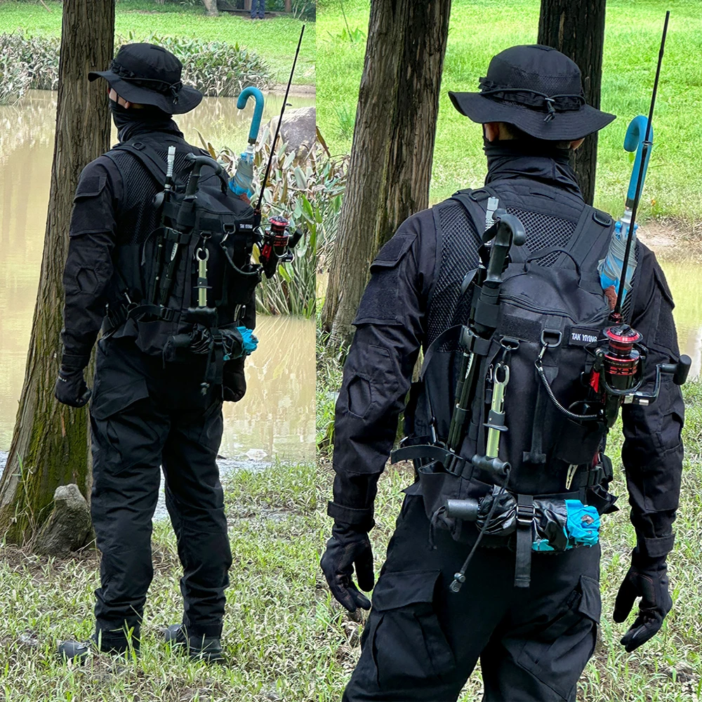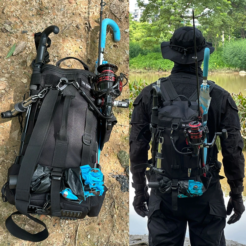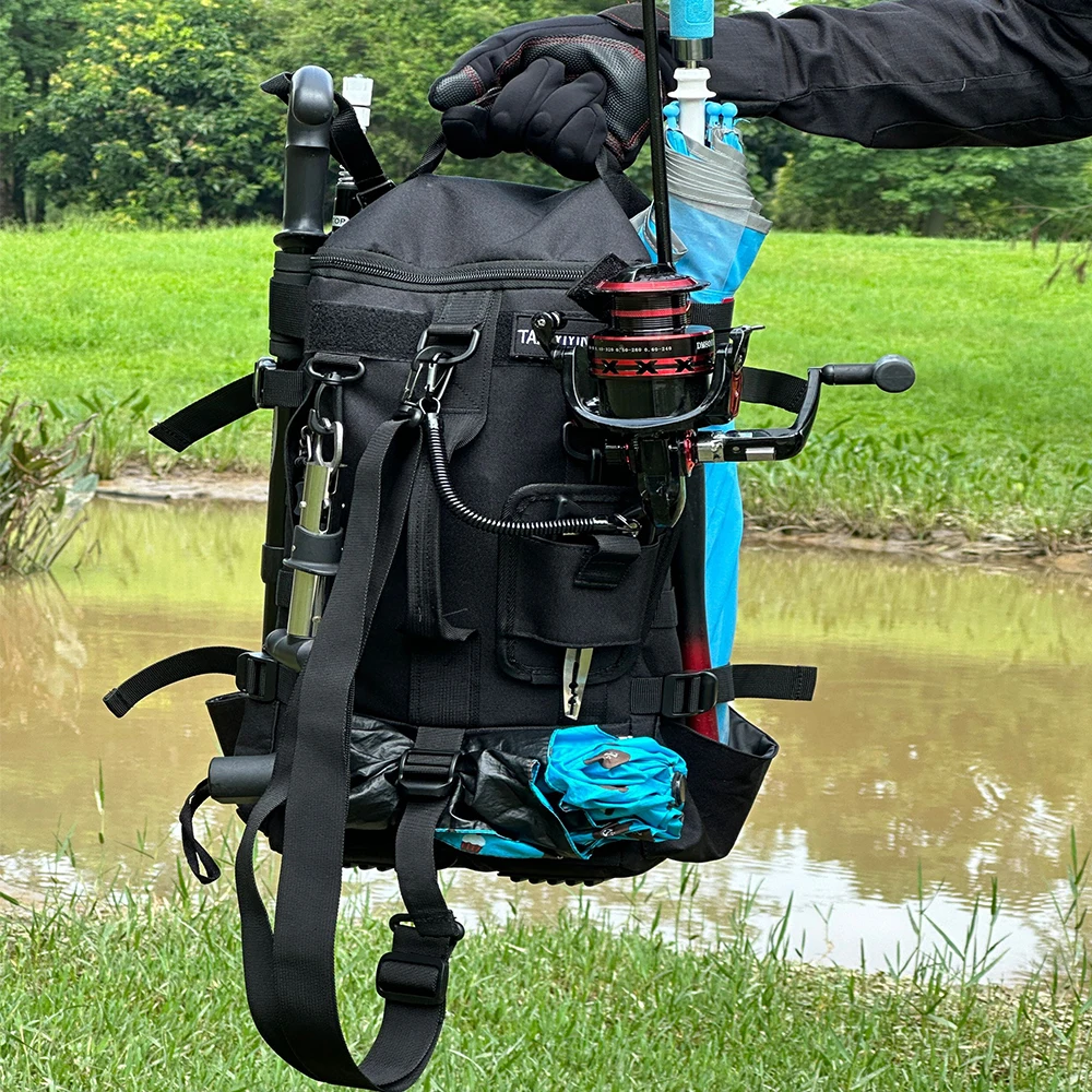 Mochila de pesca, bolsa de equipo de pesca portátil de gran capacidad con soporte para caña, mochila para deportes al aire libre para pesca, senderismo, Camping