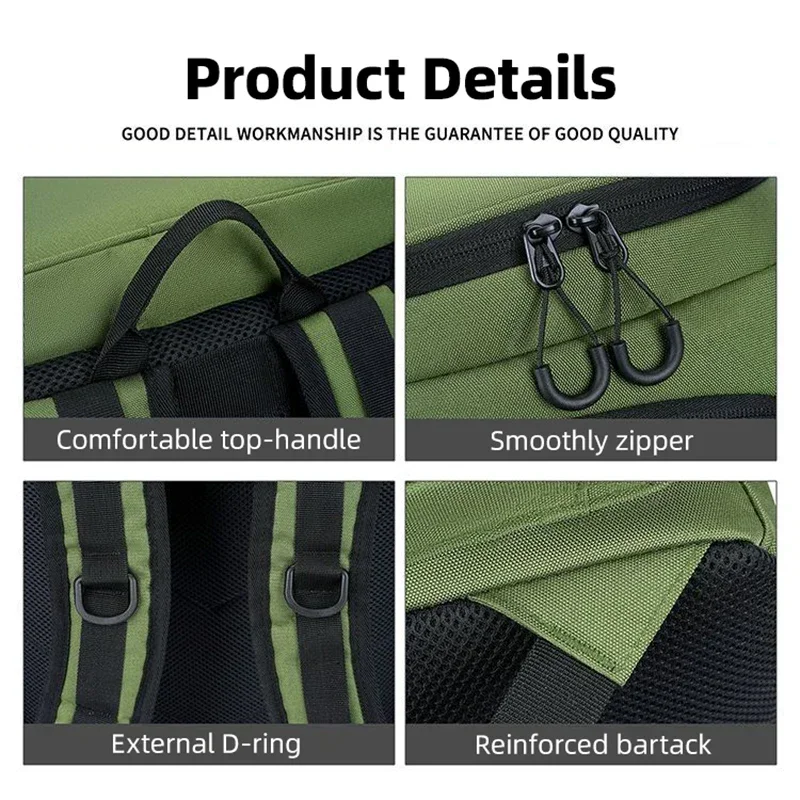 DISEÑO CÓMODO Y ERGONÓMICO: nuestra bolsa para aparejos de pesca cuenta con una almohadilla de esponja suave y transpirable para reducir la presión sobre los hombros y la espalda.Las correas ergonómicas para los hombros se adaptan a las líneas de su espalda y garantizan la distribución del estrés para una experiencia de transporte cómoda durante los largos viajes de pesca.