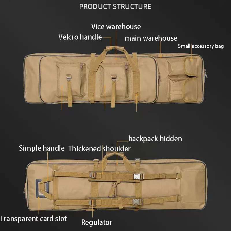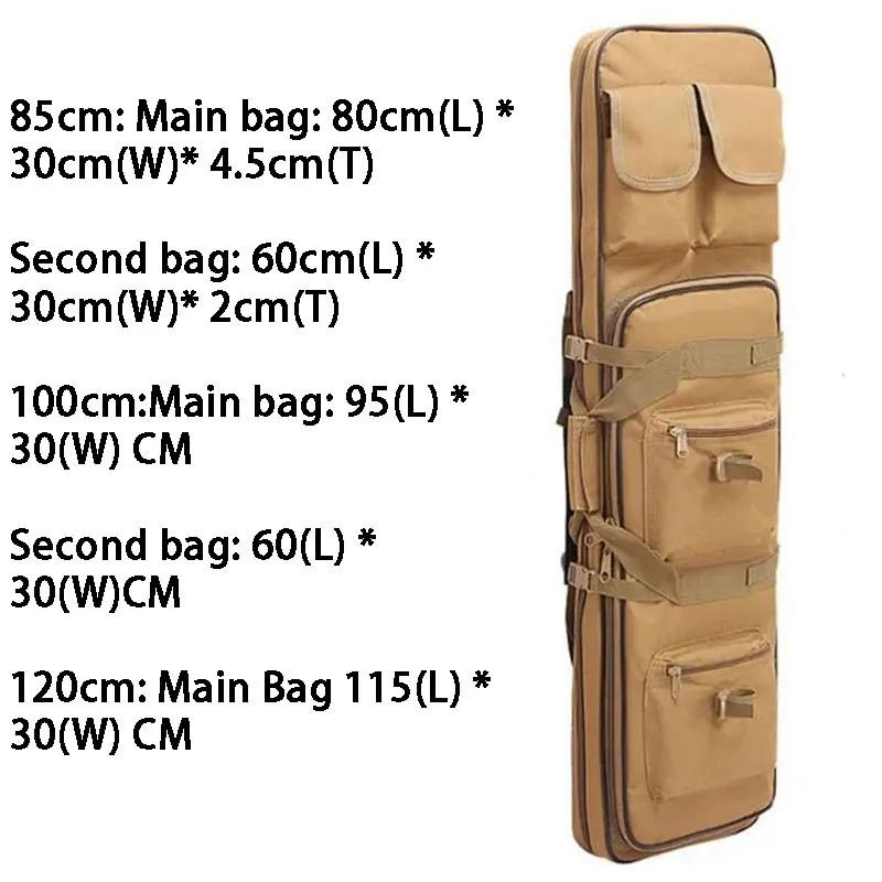 Contiene funda extendida capaz de almacenar rifle con 83.96.118cm de longitud máxima.