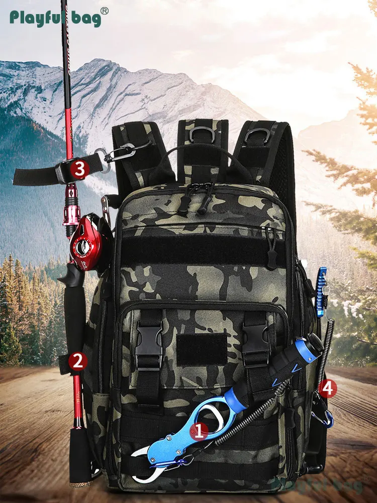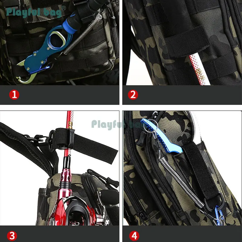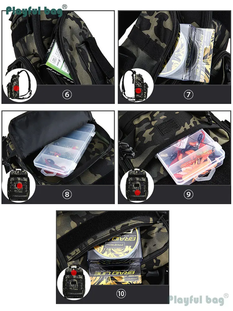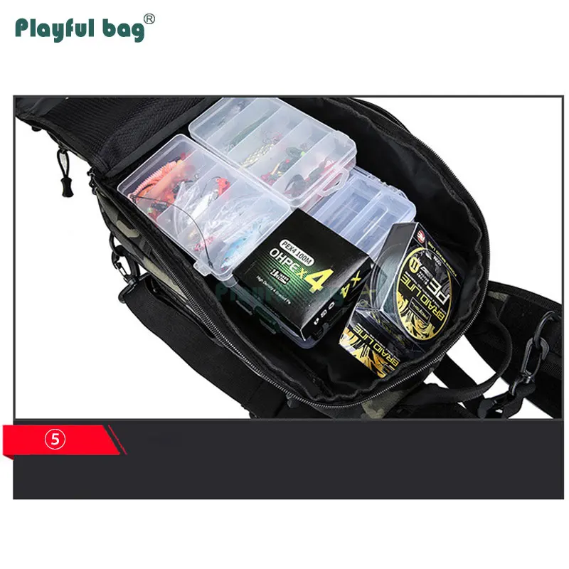 5Paquete principal: Puede contener carrete de pescado con caja de cebo Luya, agua mineral, sombrero, guantes, toallas, etc.Diseño de gran capacidad, práctico y conveniente.