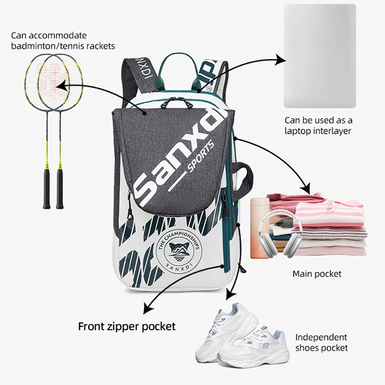 Bolsa de bádminton, mochila de tenis de 3 uds., bolso de hombro deportivo para hombres y mujeres, compartimento independiente para zapatos, bolsa plegable para raqueta