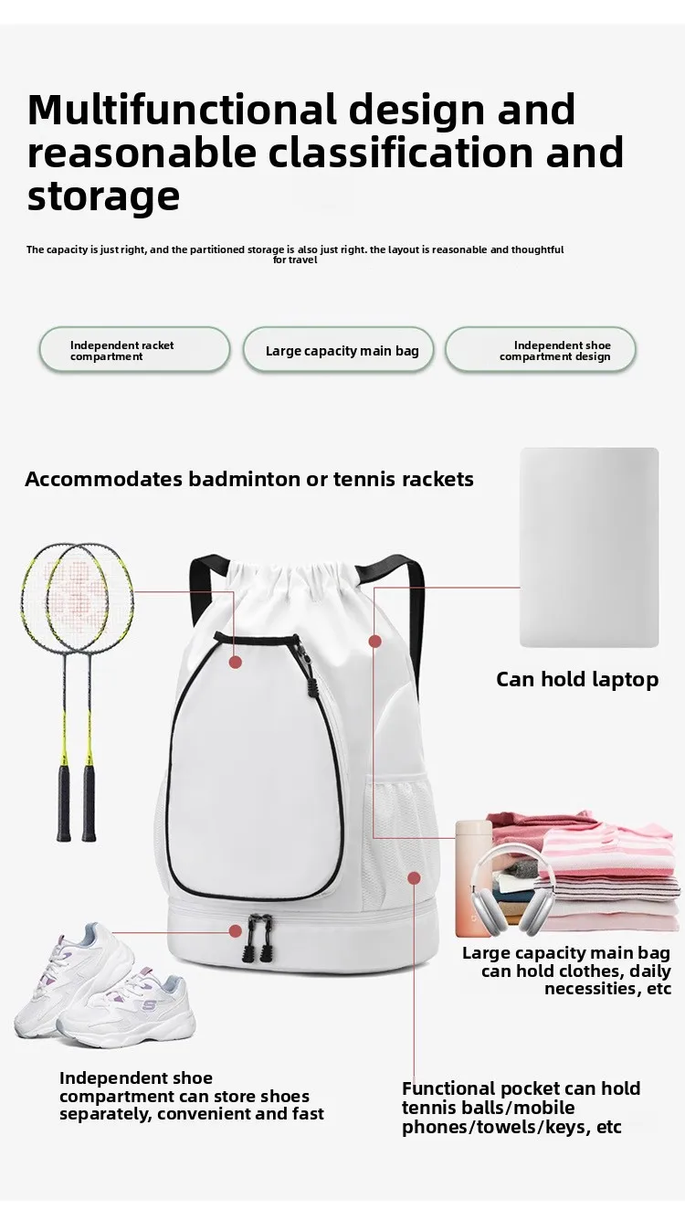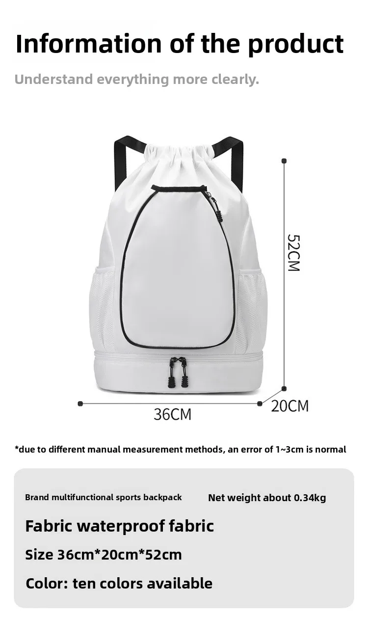 Nombre: Mochila multifuncional para deportes al aire libre. Material: tela Oxford Tamaño: 52*36*20cm Peso: 400 g Adecuado para baloncesto, bádminton, tenis, etc.
