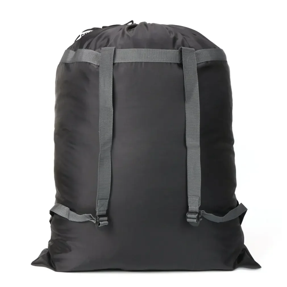 Mochila resistente al agua de poliéster de gran tamaño para hombre y mujer, bolsa de lavandería, bolsa de almacenamiento de ropa de viaje para acampar, bolsa de lona negra