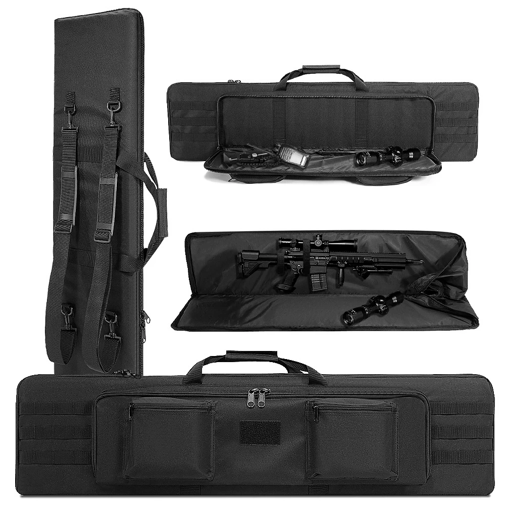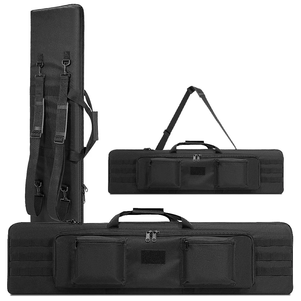 2.El espacioso compartimento principal tiene capacidad para armas de fuego largas y accesorios.Los bolsillos laterales y delanteros están diseñados con compartimentos separados para el almacenamiento organizado de accesorios y herramientas pequeñas, asegurando un fácil acceso.