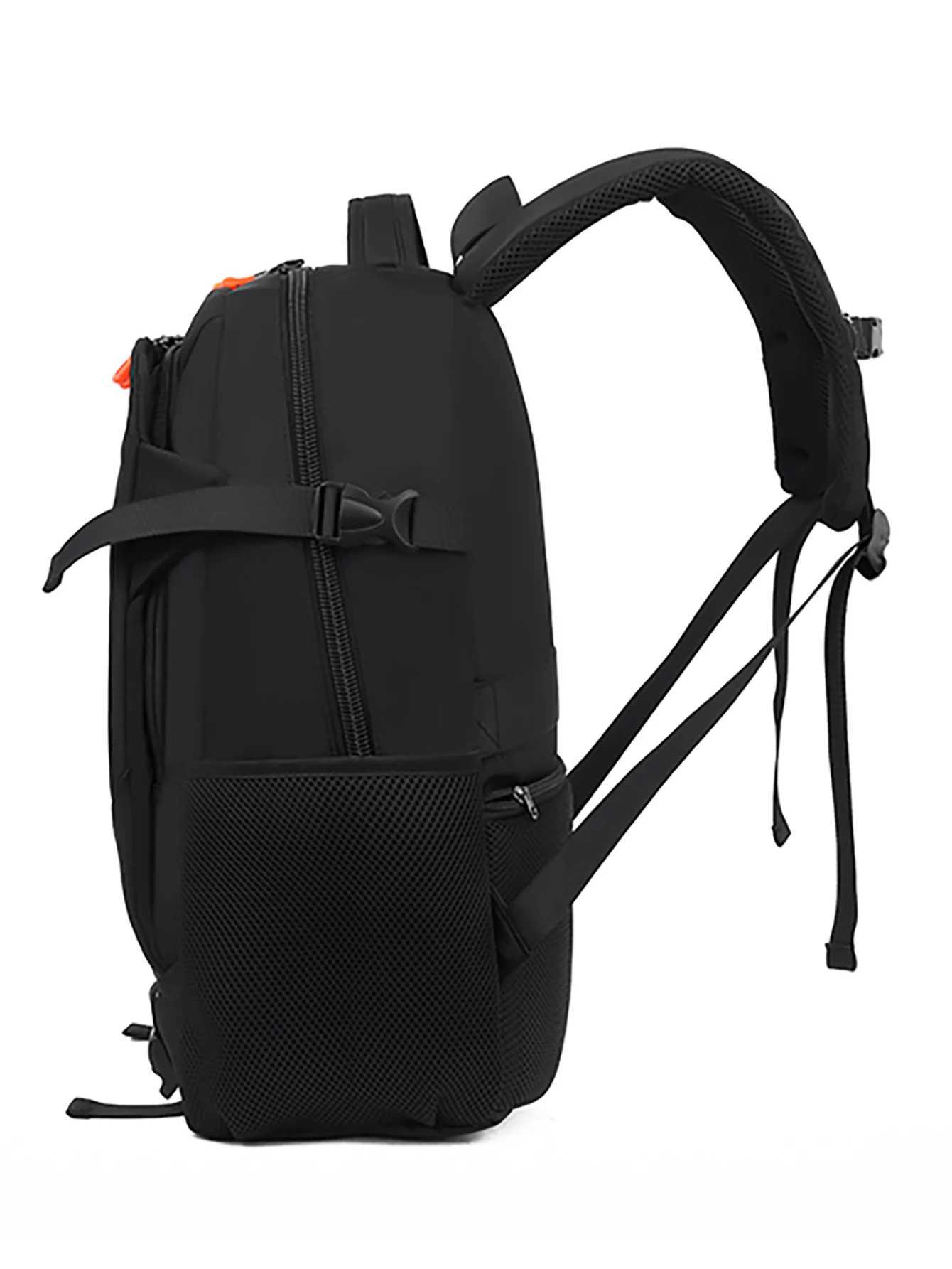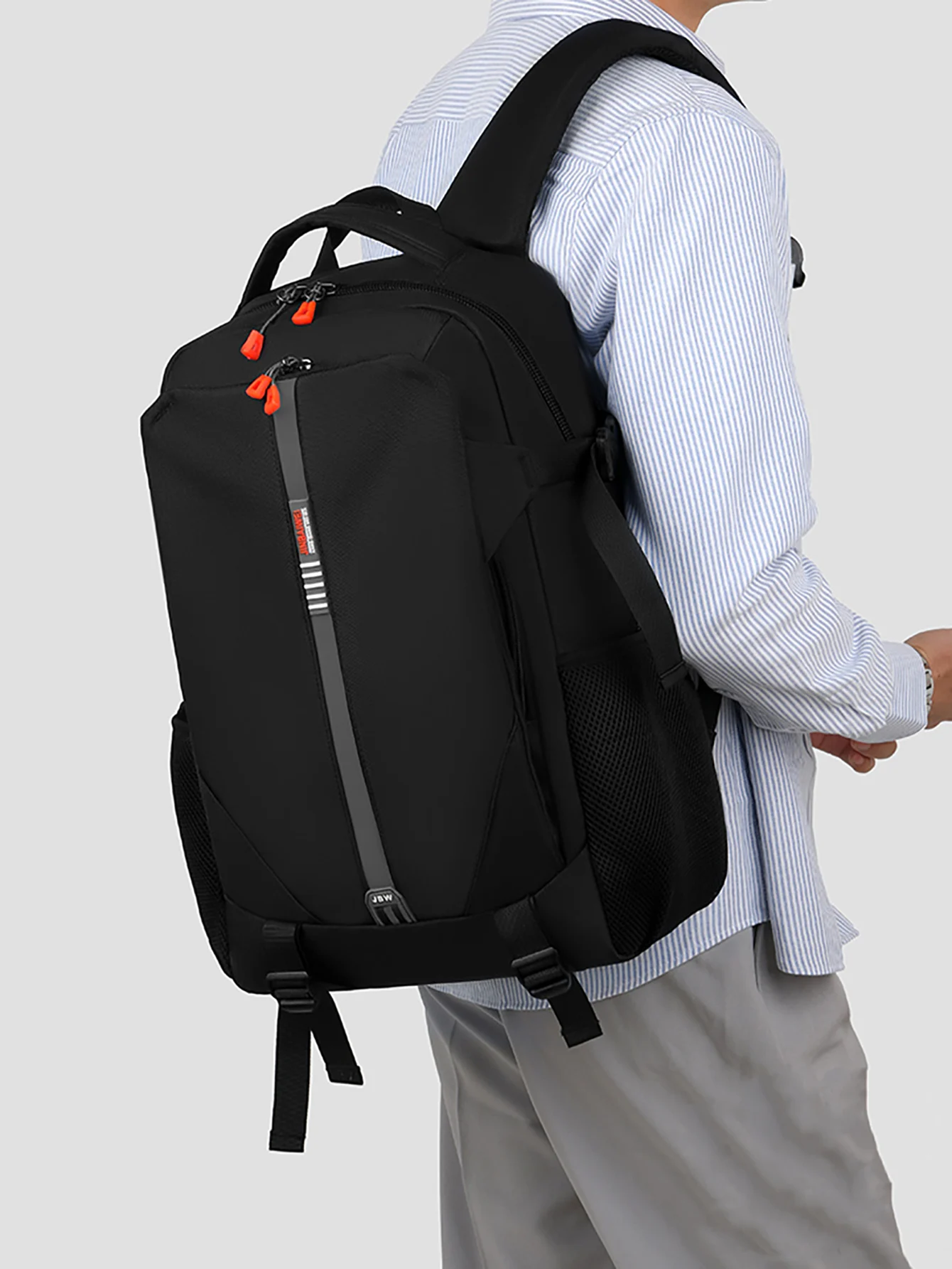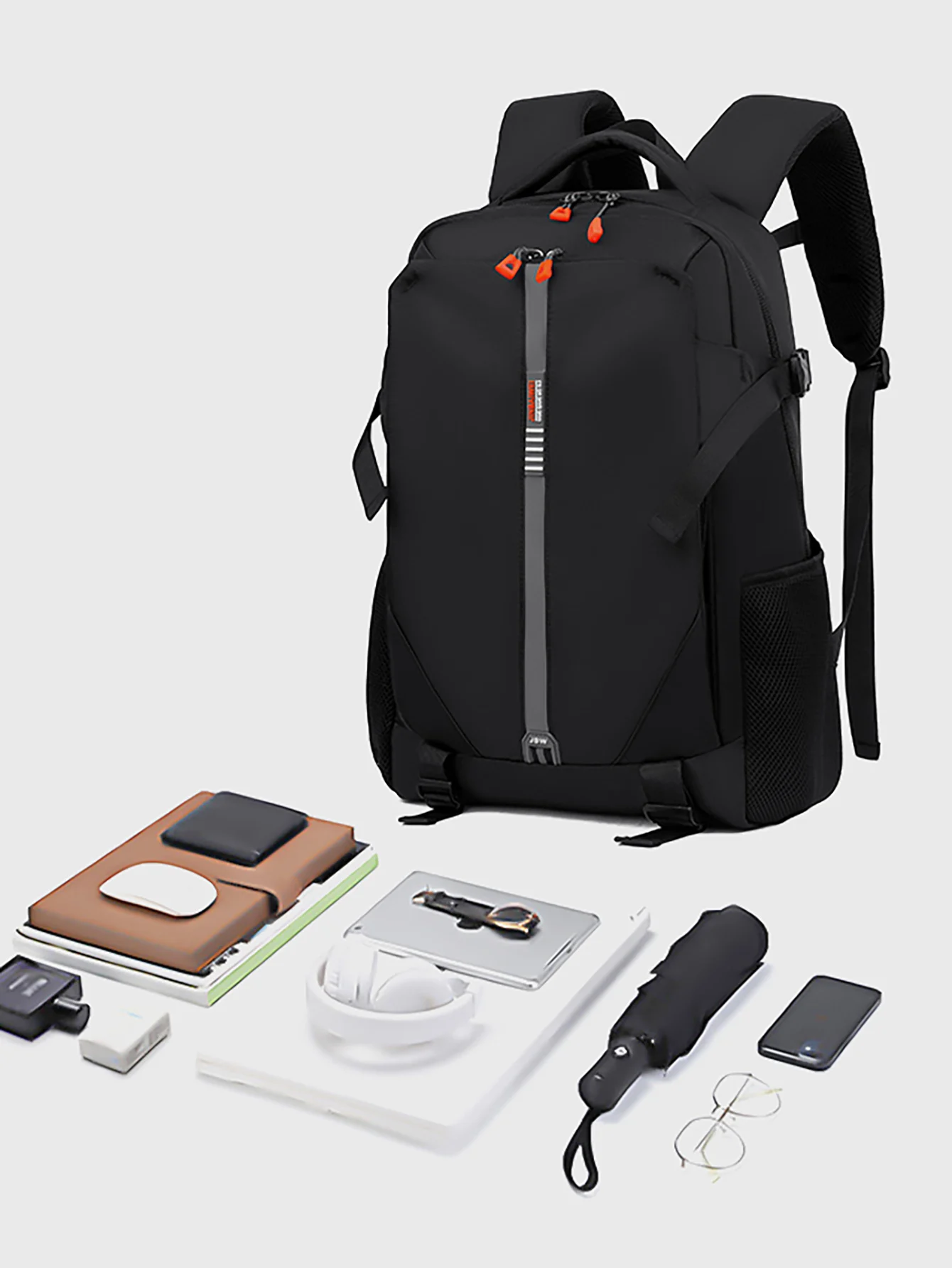 1.Almacenamiento científico, gran capacidad: bolsillo frontal con cremallera, compartimento principal grande, bolsillo trasero con cremallera, bolsillos laterales
