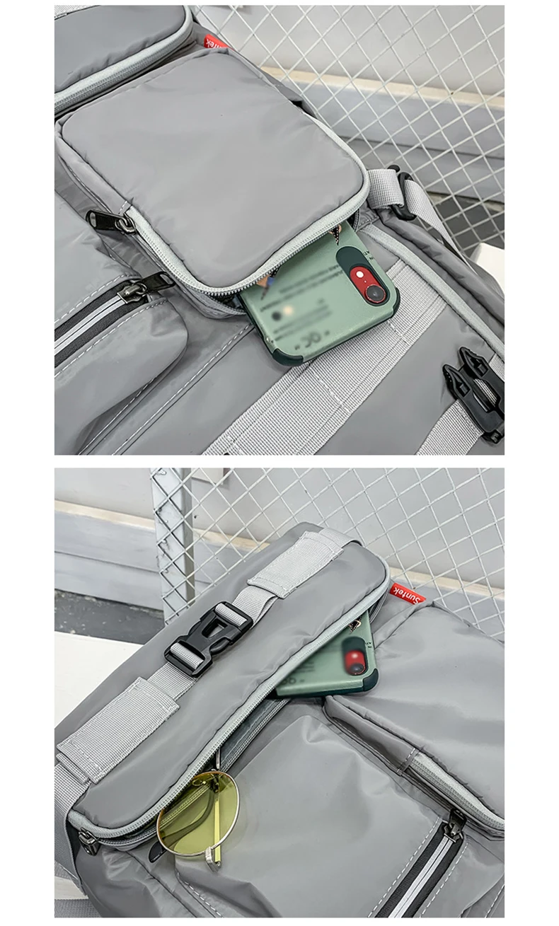 Bolso de hombro de viaje grande para hombre, bolso de lona deportivo impermeable con múltiples bolsillos, mochila para exteriores, mochila funcional