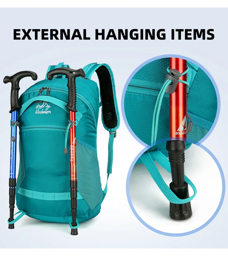 3.Diseño colgante lateral, puede colgar los bastones de senderismo.
