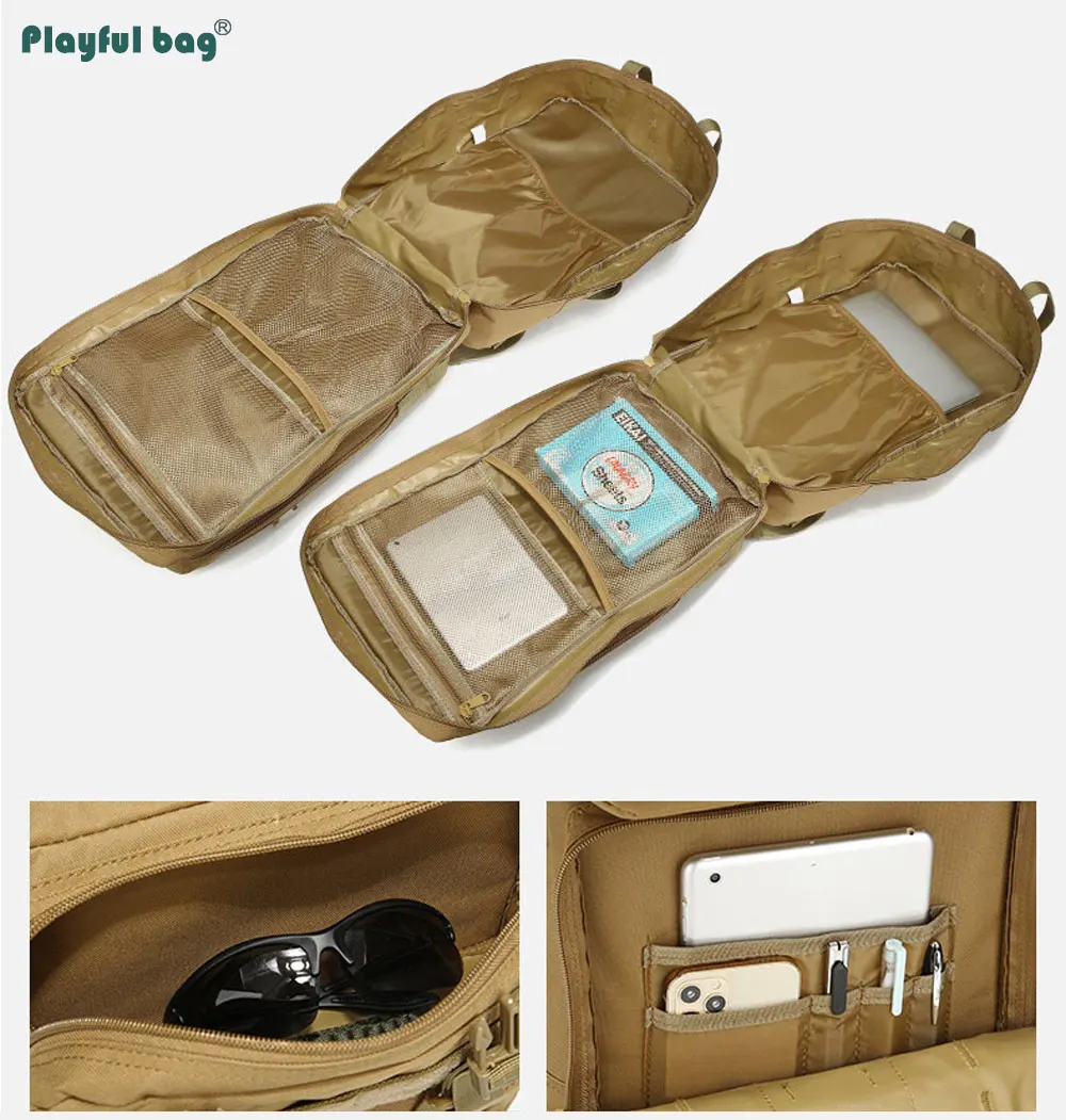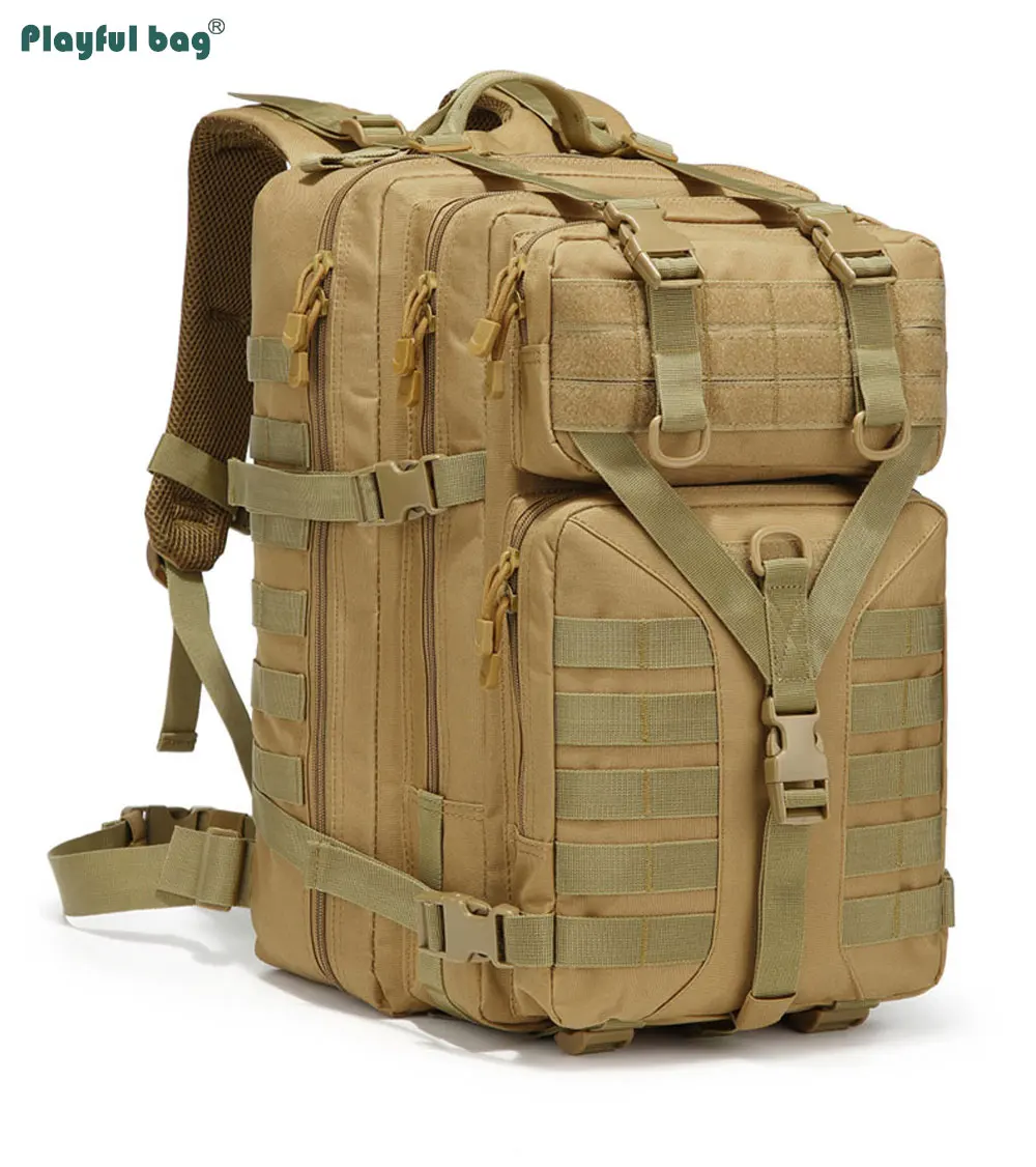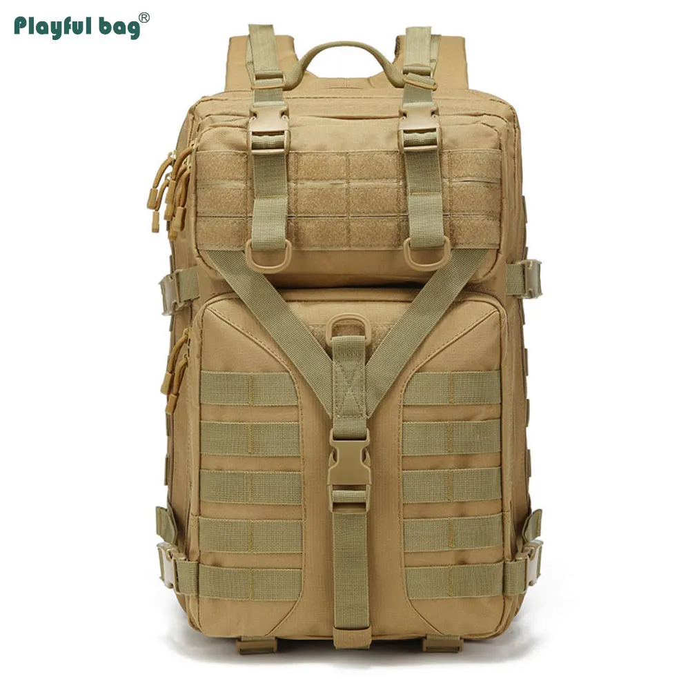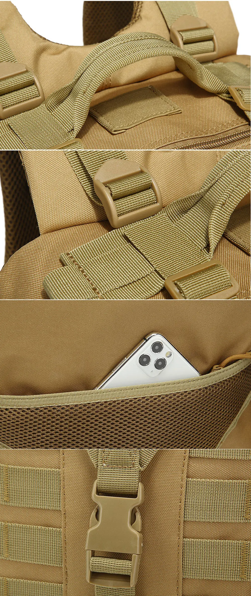 Nombre del producto: Mochila táctica para exterioresTela: tela impermeable OxfordCorreas: correas de nailonTamaño: 45*35*31cmPeso: alrededor de 1,18 KG