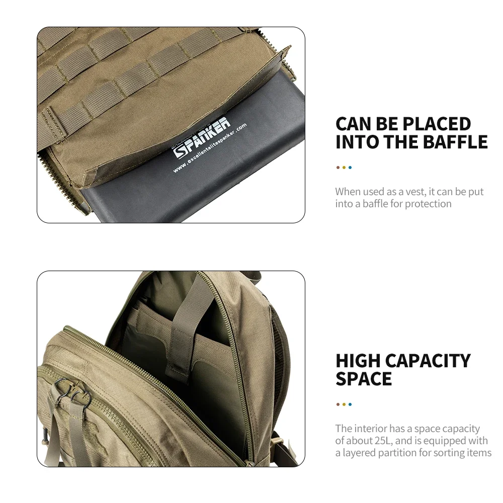Mochila táctica de 20L, chaleco de doble uso, bolsa portadora de placa Molle, mochila de nailon para senderismo con chalecos, mochilas para exteriores