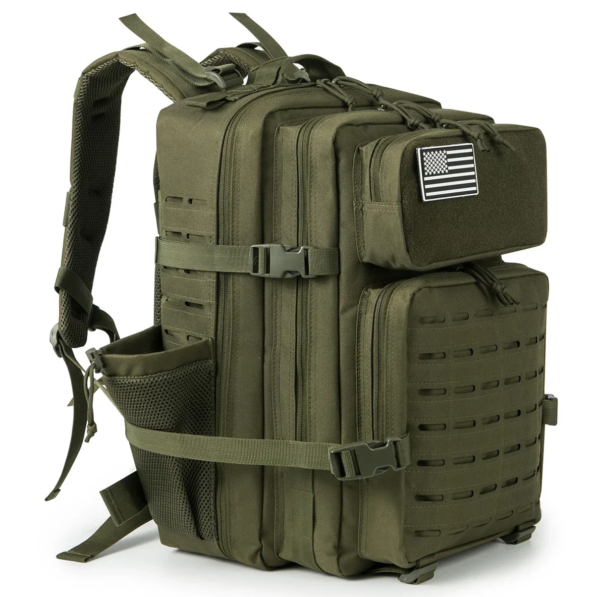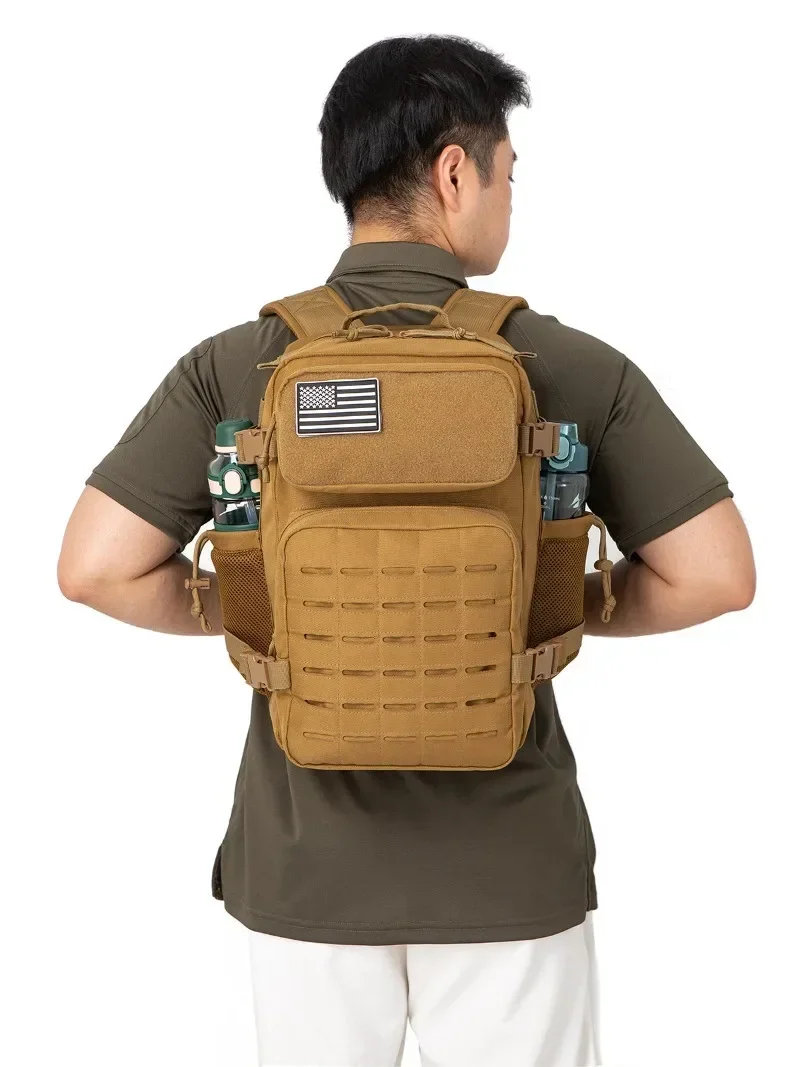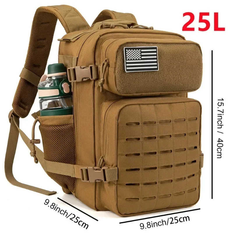 Mochila táctica de 25L/45L para mujeres/hombres, mochila Molle con corte láser de supervivencia, mochila escolar con portavasos doble
