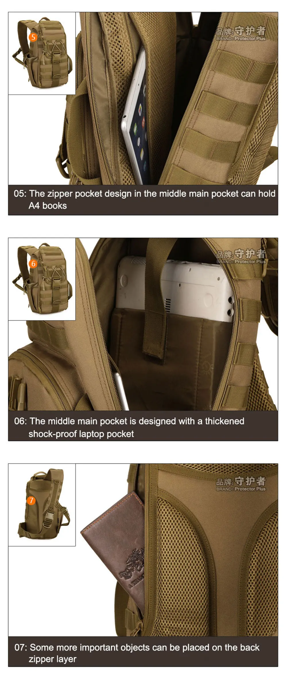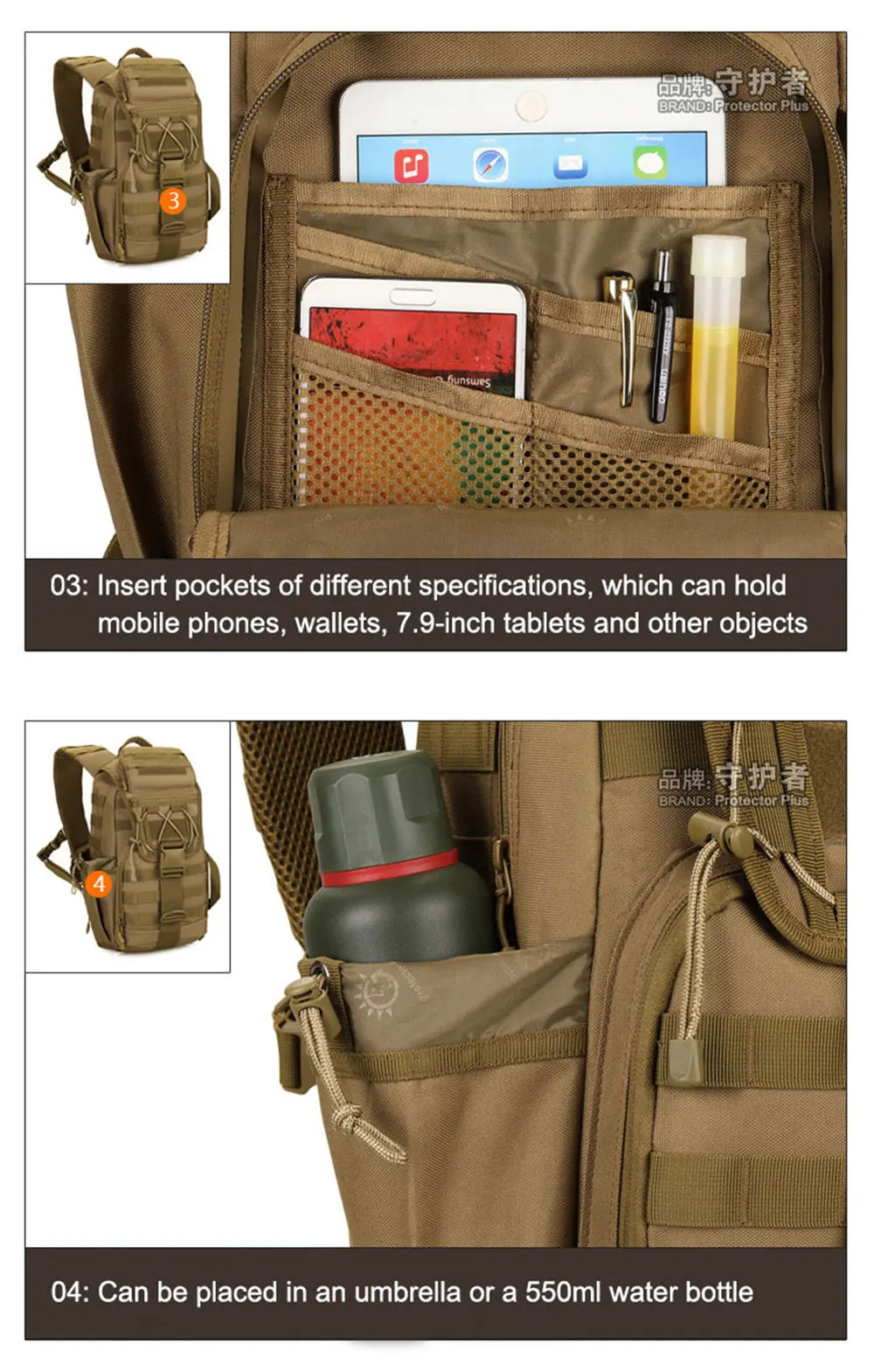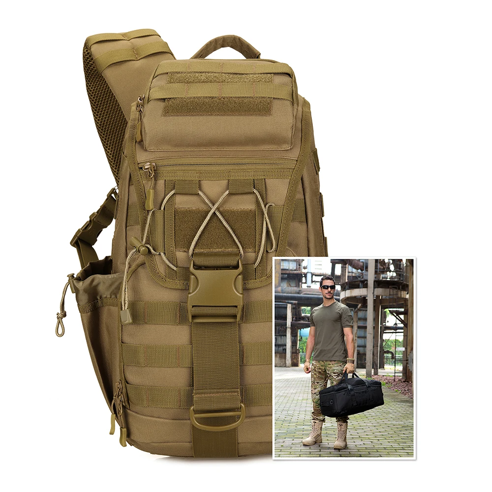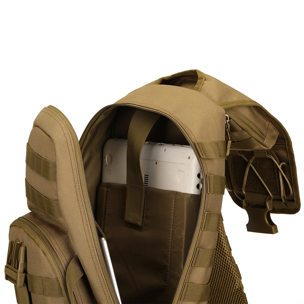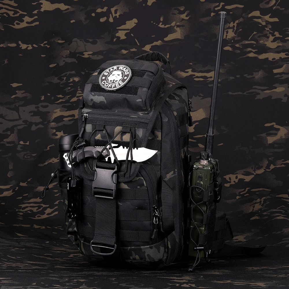 El estilo táctico de esta mochila la hace ideal para escenarios militares, de caza y de supervivencia, brindando practicidad y funcionalidad.