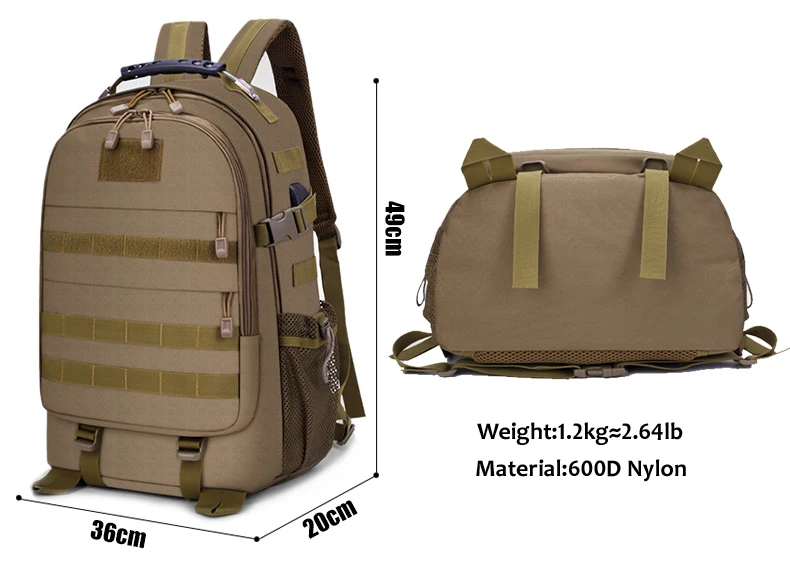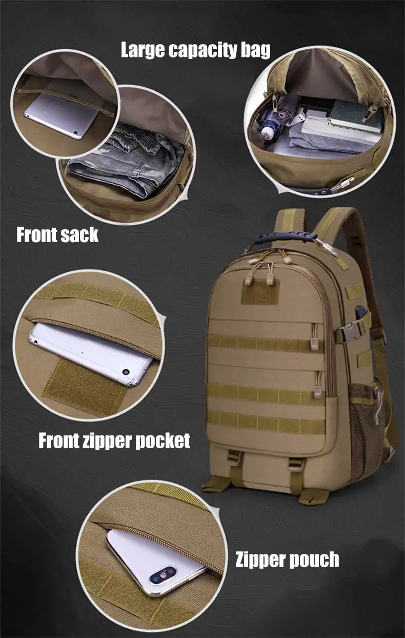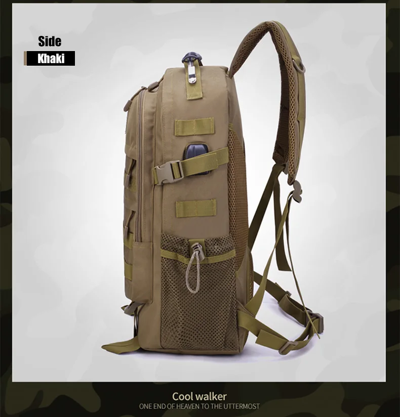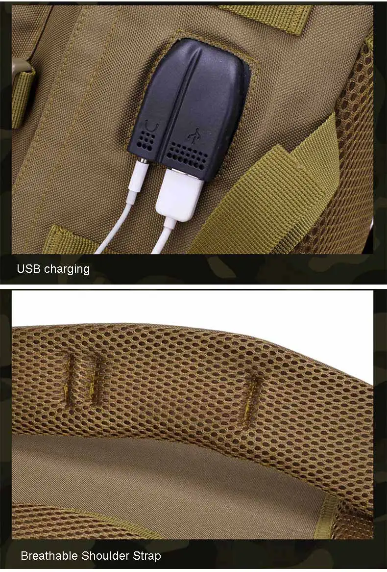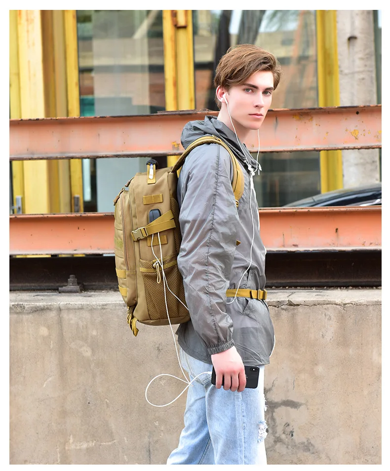 Mochila táctica de 35L para hombre, bolsa militar de camuflaje para acampar, senderismo, viaje, montañismo, deportes al aire libre, bolso de hombro USB