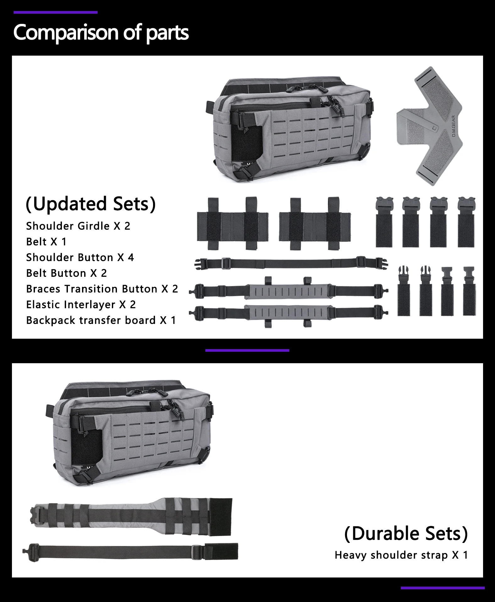 Esta versión se puede cambiar, puede ser una mochila táctica, una bandolera o una bolsa de pecho.