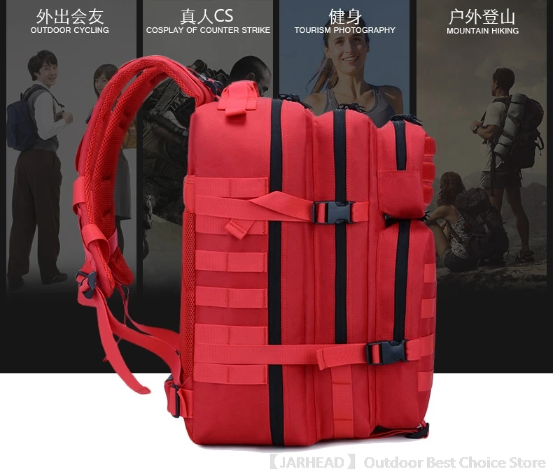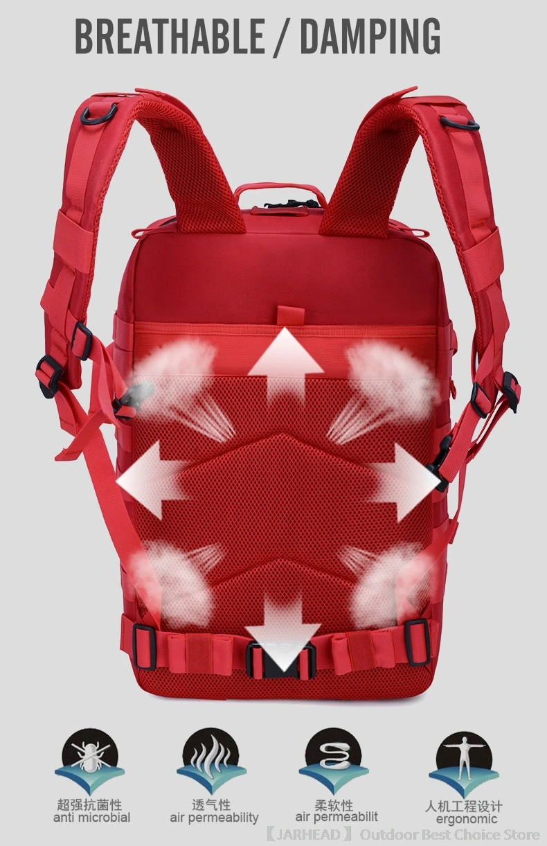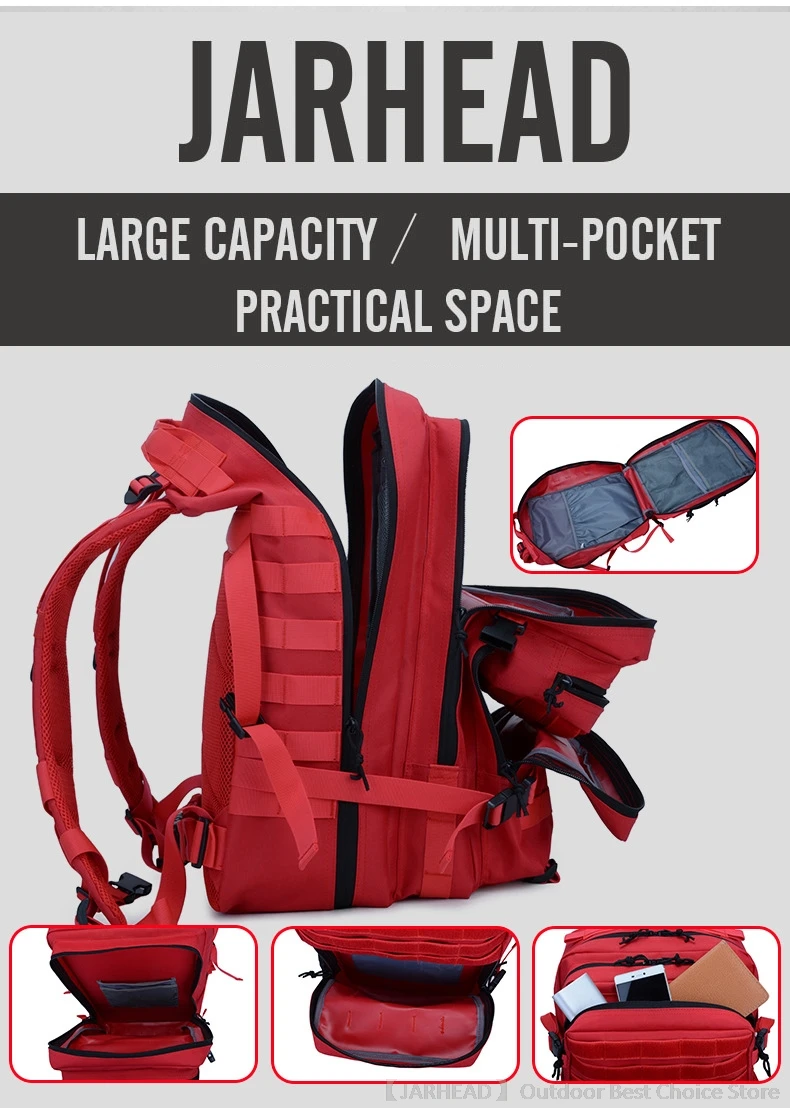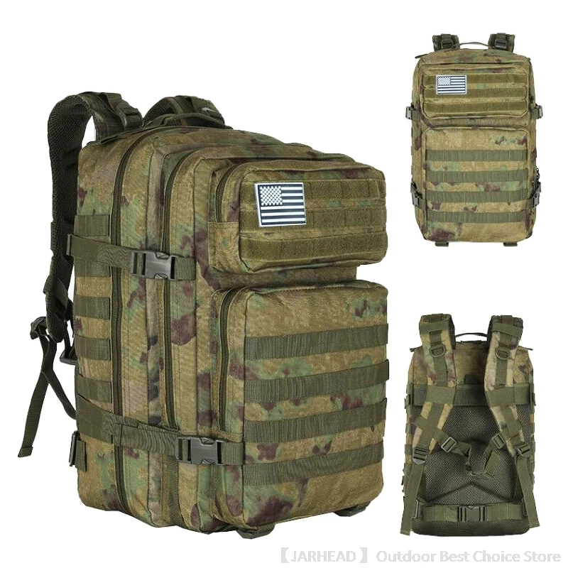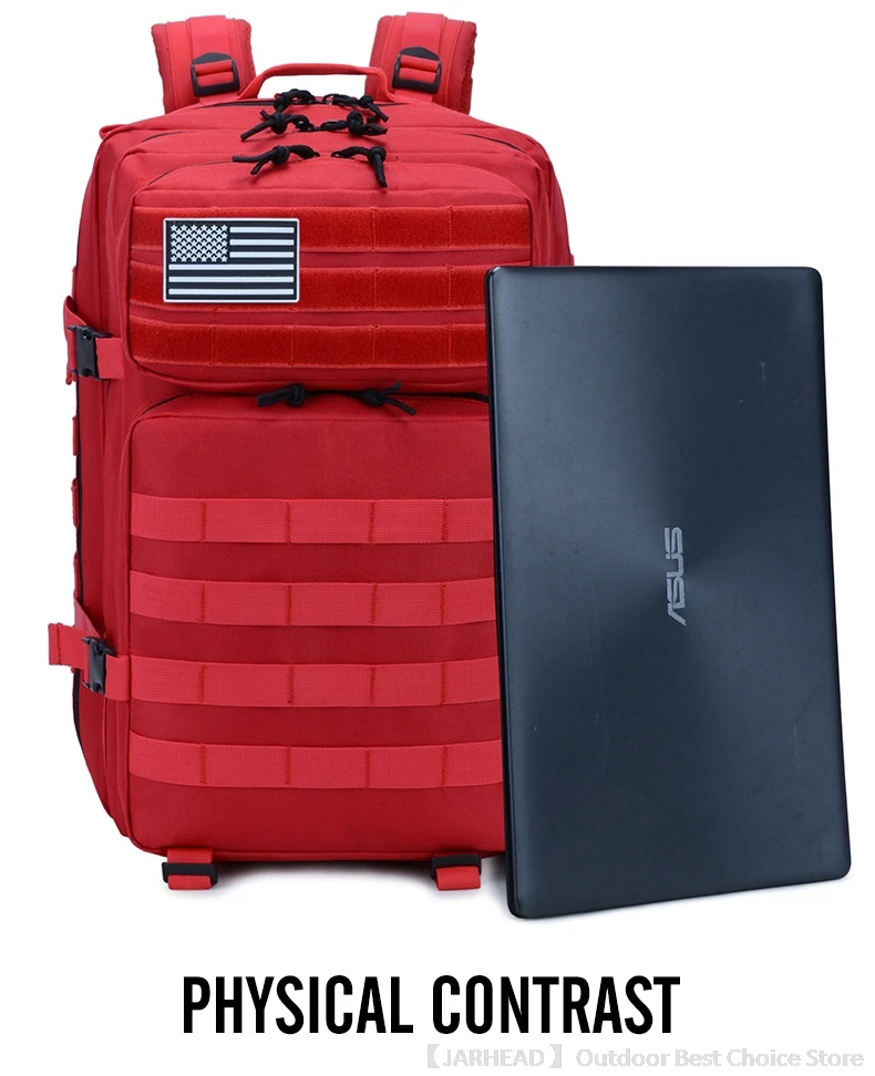 2. Aproximadamente 45L de capacidad con múltiples compartimentos, bolsas y bolsillos con cremallera3. cremalleras de alta calidad y hardware de plástico extra duradero mejorado4. Soporta fácilmente 2 pares de zapatillas/calzado, toallas, ropa de gimnasia, preparación de comidas y pequeñas herramientas de entrenamiento.5. Compartimento dedicado para ordenador portátil/dispositivo (17 '')6. Diseño y sistema MOLLE con correas frontales y laterales para accesorios adicionales.7. Correas de compresión ajustables de diseño ergonómico con lazos de velcro para un transporte cómodo8. La mochila se abre plana a 180 grados para facilitar el embalaje/desembalaje9. Todos los compartimentos tienen aberturas bidireccionales, solapas y lengüetas de tracción para un fácil acceso10. A prueba de desgarros y resistente al agua11. Tamaño: 50cm x 30cm x 30cm