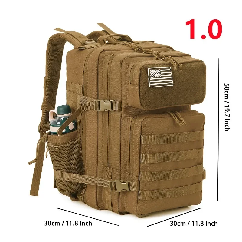 ✅【EL ESPACIO QUE NECESITA】 Esta mochila táctica tiene un tamaño aproximado de: 50 cm x 30 cm x 30 cm y un tamaño adecuado de 45 litros de capacidad, esta mochila tiene espacio para todo tu equipo esencial.Los grandes compartimentos de almacenamiento interiores multicapa pueden acomodar una gran cantidad de equipos para exteriores y también satisfacer sus necesidades de viaje diarias.Gran área de velcro, hace que la mochila sea diferente a otras mochilas, puedes pegar el parche que quieras..Un parche de la bandera de EE. UU. como regalo (se puede quitar).