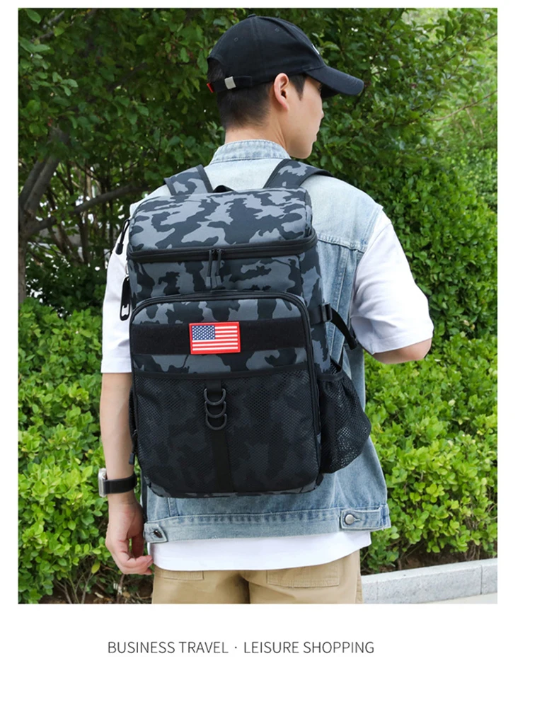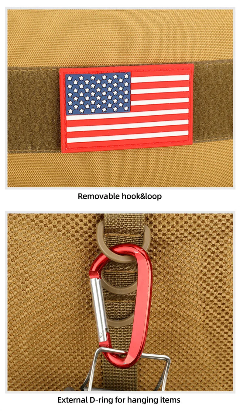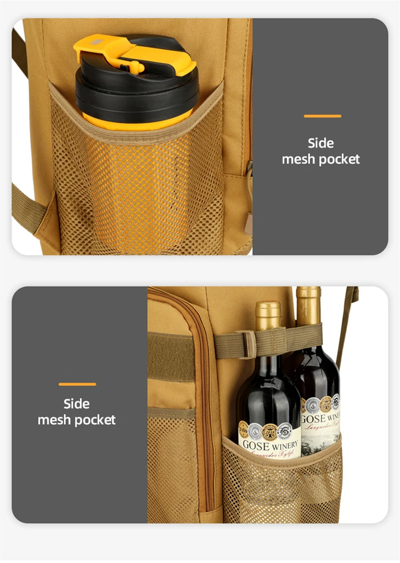3.Almacenamiento multicapa y razonable: bolsillo frontal con cremallera, bolsillo frontal de malla, bolsillo lateral de malla.
