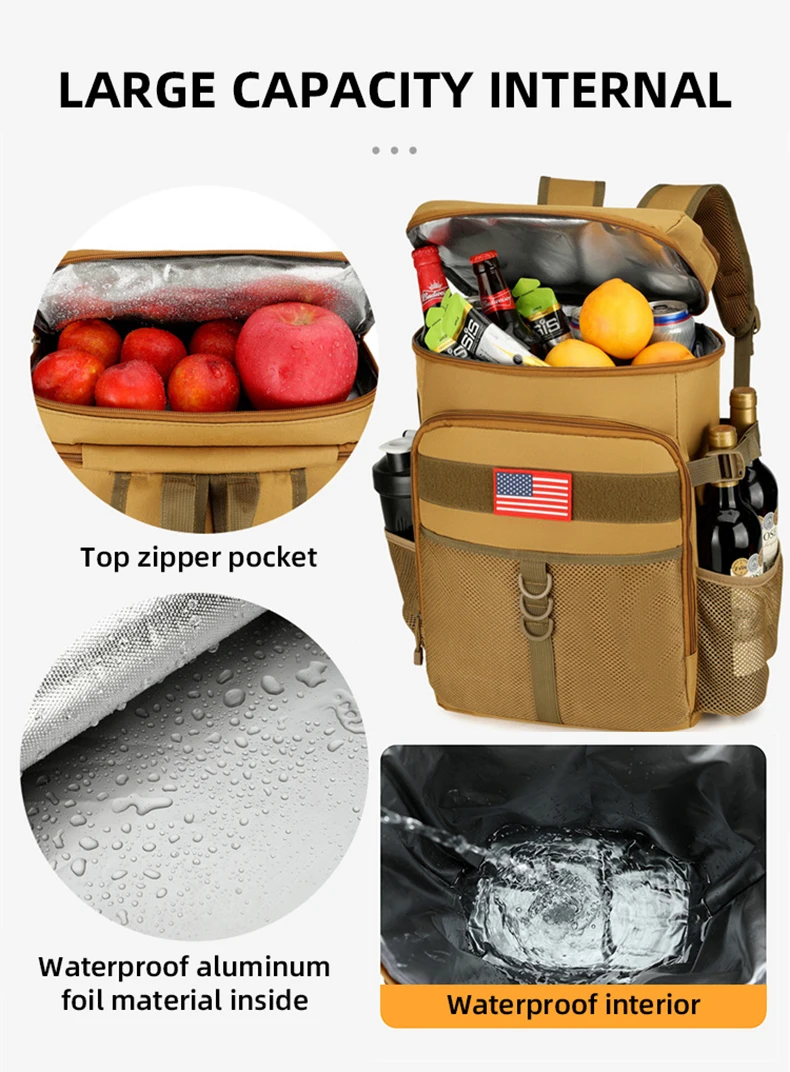 2.Gran capacidad: interior espacioso, bolsillo superior con cremallera para almacenamiento de alimentos.