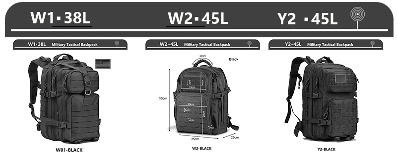 [Multi-funcional]:Mochila táctica tamaño aprox.: 35*25*50cm(W * D * H), la capacidad es de aproximadamente 45L. Esta mochila de utilidad es adecuada para diferentes grupos de personas y diversas ocasiones. Se puede utilizar como mochila de asalto 3P, mochila, mochila de emergencia, mochila EDC al aire libre, mochila Molle o bolsa de uso diario. El área de la almohadilla mágica frontal para que usted haga esta mochila más personalizada.