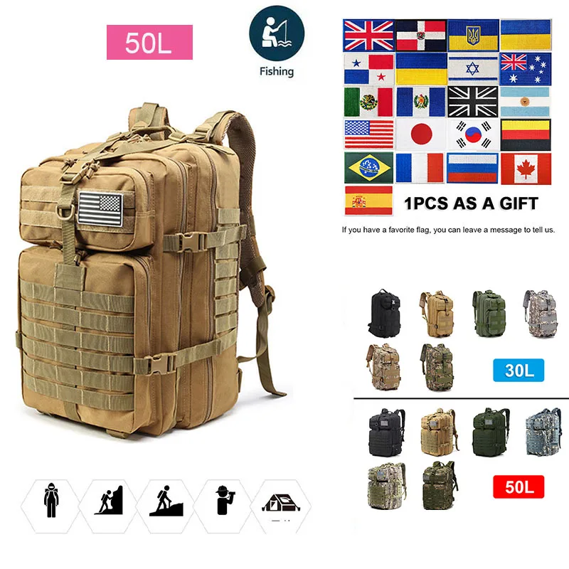Mochila táctica de camuflaje de gran capacidad, bolsa impermeable de nailon para deportes al aire libre, Camping, senderismo, caza, 30L/50L