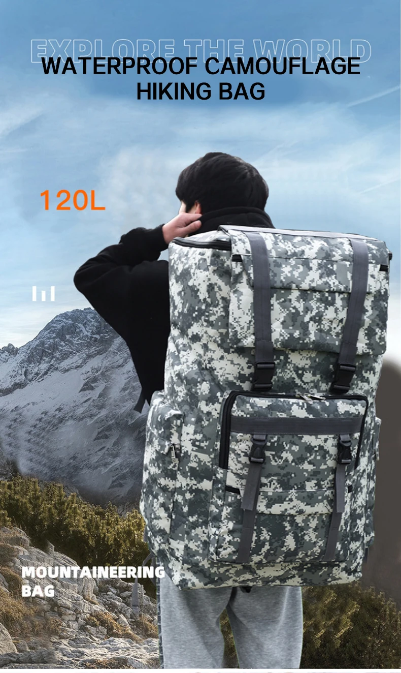 Mochila táctica de camuflaje para hombre, bolsa grande de 120L, impermeable, para exteriores, equipaje de asalto, deporte, senderismo, Camping, viaje