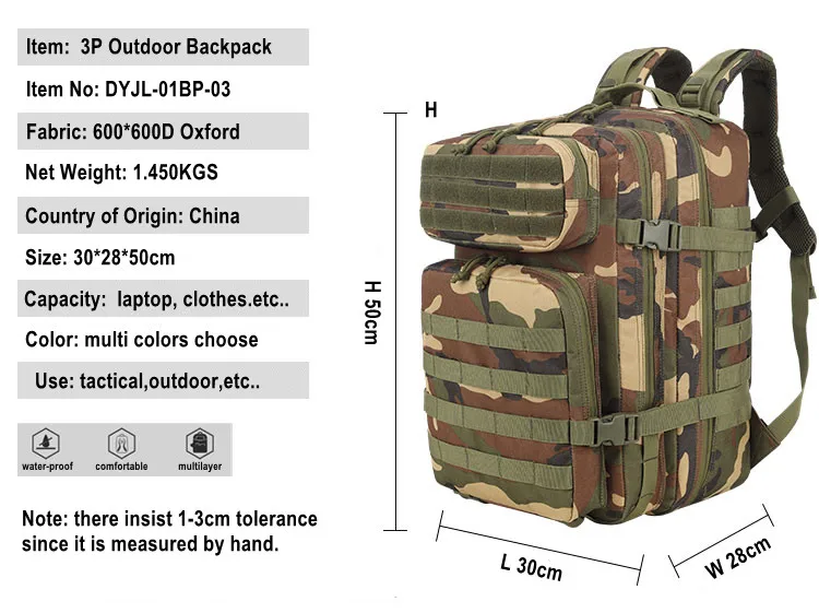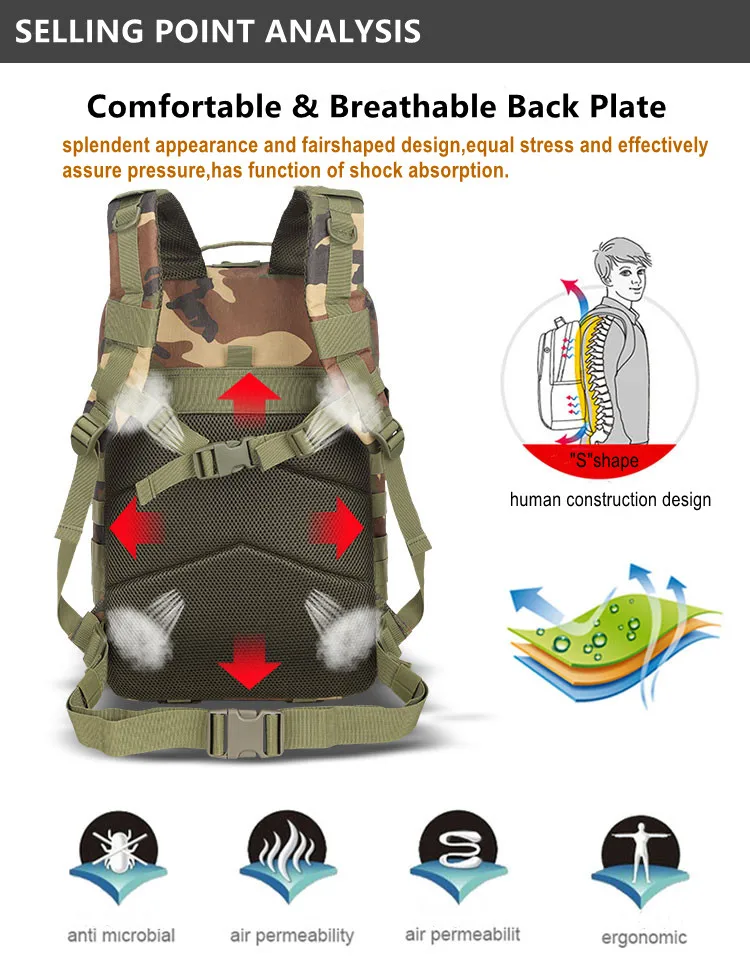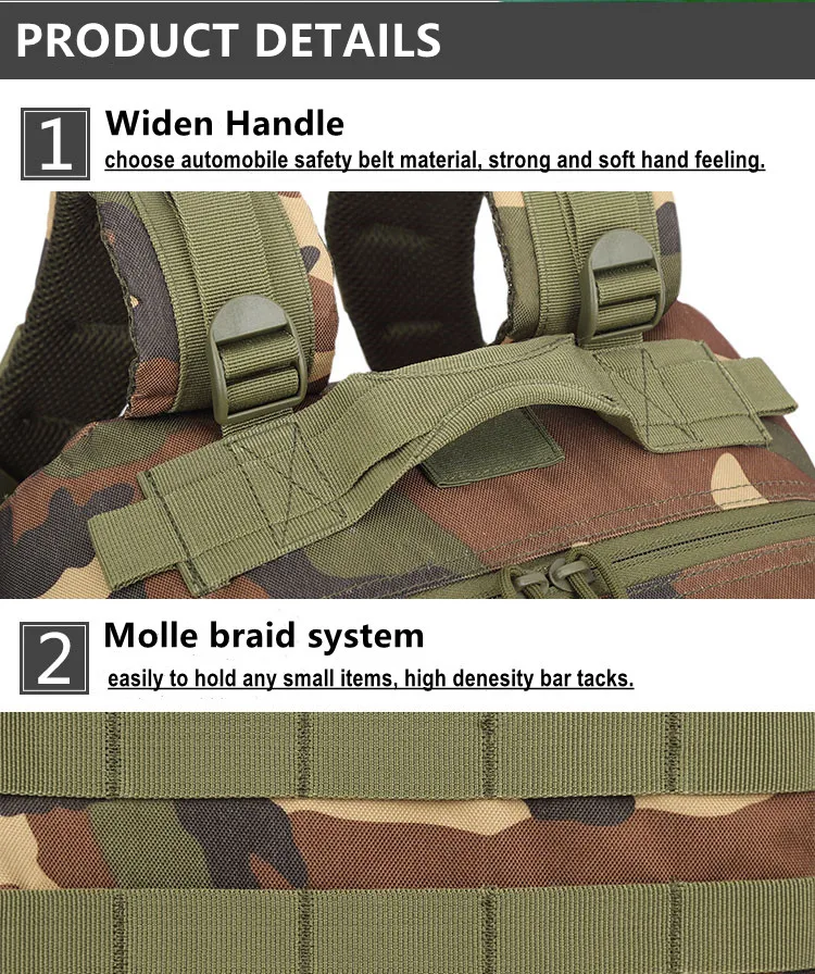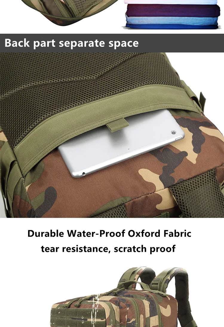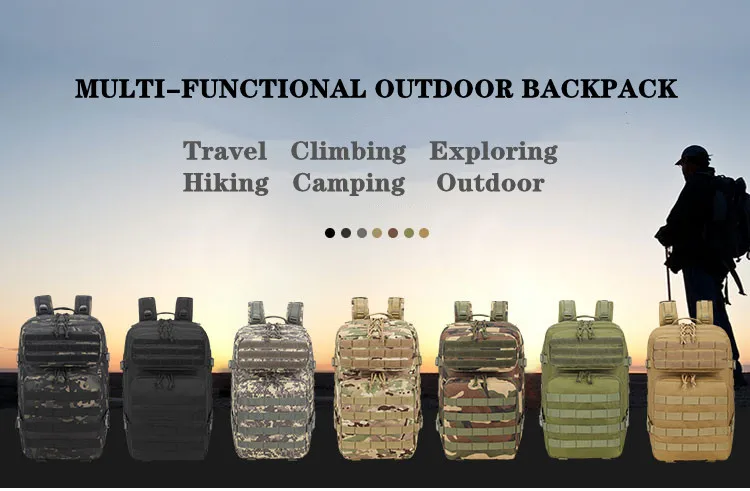 Mochila táctica de camuflaje multifuncional para viajes al aire libre, bolsa de escalada, exploración, senderismo, Camping, mochila de combate