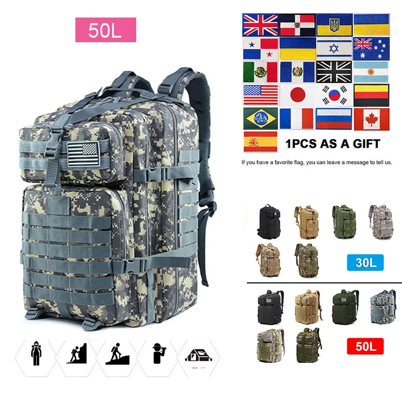 Mochila Táctica Militar para Exteriores, Bolsa Militar para Montañismo, Portátil, MOLLE 3P, Bolsa de Viaje, 30L/50L