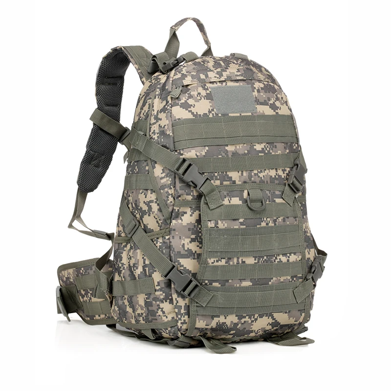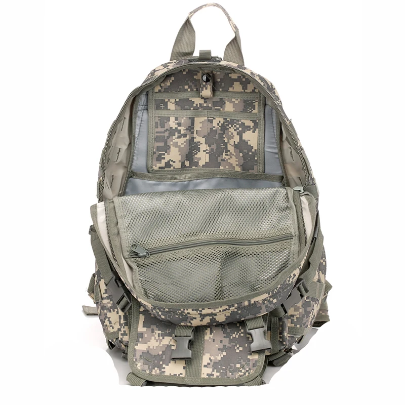 2021 hombres al aire libre militar ejército mochila táctica Trekking deporte viaje mochilas Camping senderismo caza camuflaje mochilaCaracterísticas:Mochila de utilidad hecha de material de nylon de alta densidad.1 "molle correas en la bolsa delantera y en toda la mochila.Bolsa frontal de diseño plegable capaz de llevar hasta 29 "Rifle AEG.Un total de 3 cremallera grande y 2 compartimentos de velcro.20 "x 12" x 5 "para compartimento principal, divisor delantero y trasero, compartimento de malla con cremallera, bolsillo organizador interior.Bolsillo para botella de agua en ambos lados.Sistema de hidratación listo y tubo de salida de bebida agujero en la parte superior de la mochila.La bolsa de hidratación ubicada en la parte posterior acomoda el depósito de agua de 3L.Correa de hombro, pecho y cintura ajustable.Almohadillas de malla en la espalda, correa de hombro y cintura para una excelente comodidad.Correa y anillo en D alrededor de la mochila, capaz de agregar bolsas y accesorios.Se puede colocar un parche de velcro en la parte delantera.Soporta duras situaciones de combate.Perfecto para actividades de juegos de guerra al aire libre.DETALLES:Peso-1280GTamaño-13 "W x 20" H x 7 "D