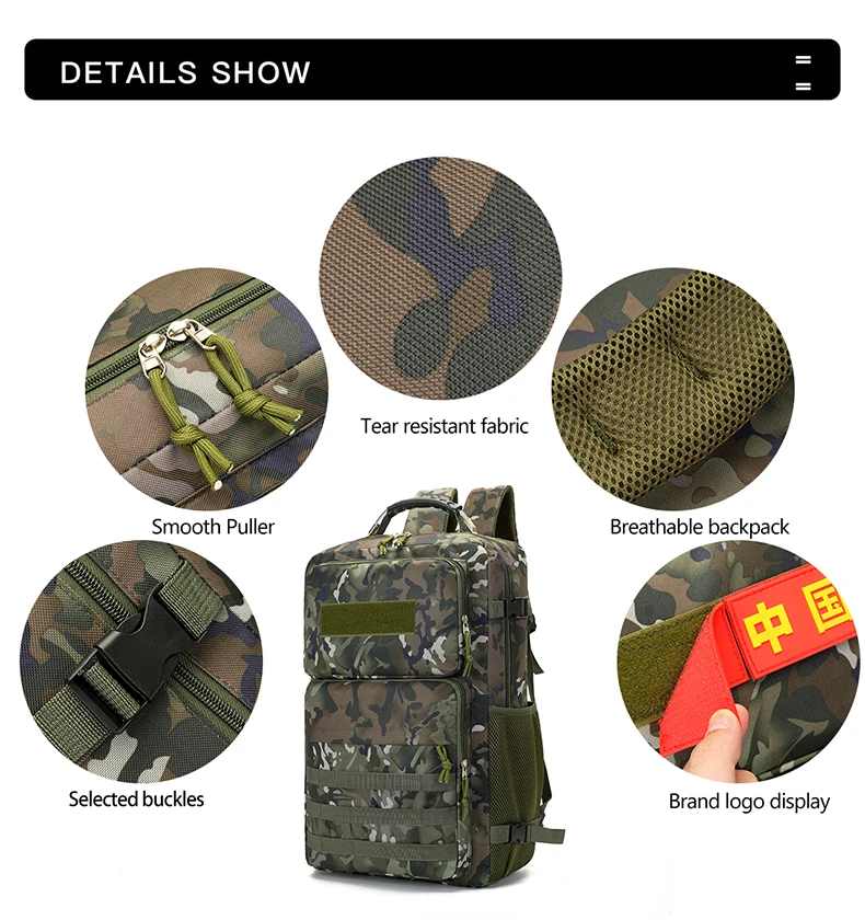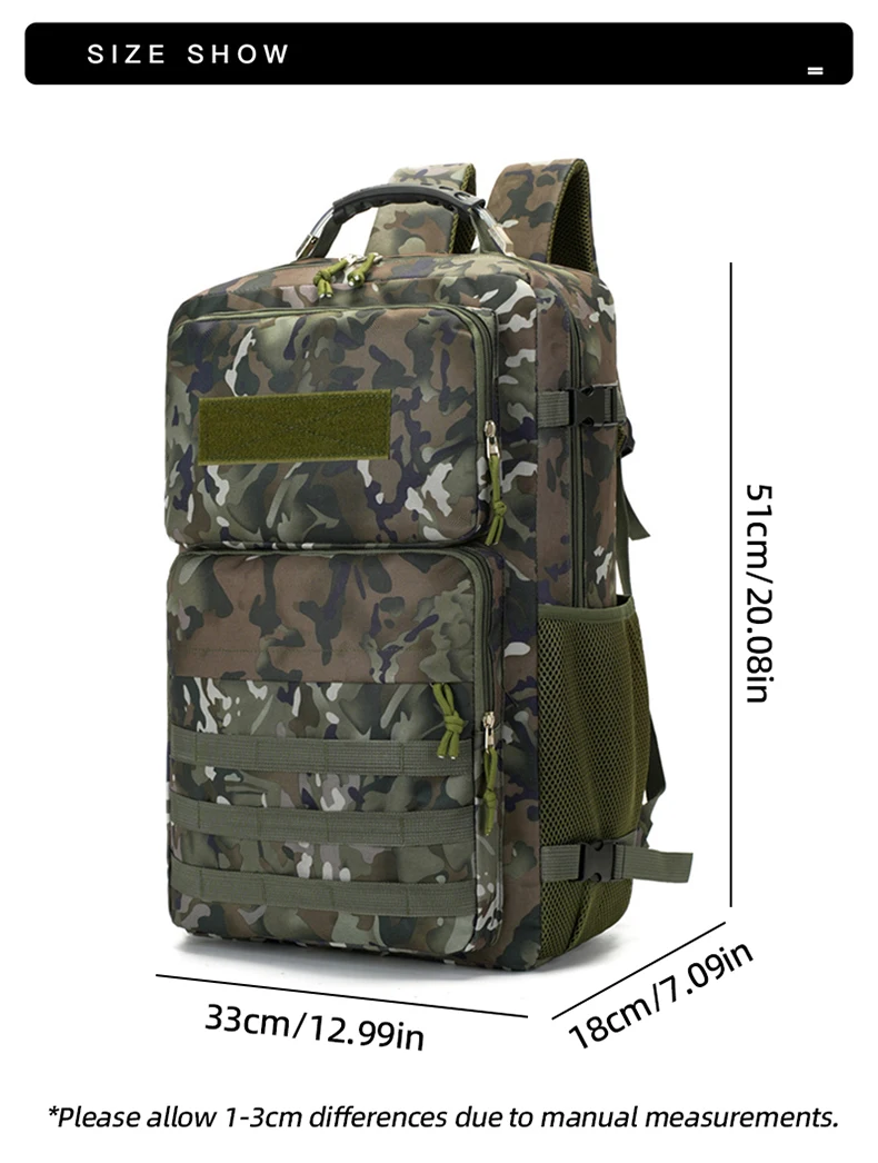 Mochila táctica de caza grande para deportes al aire libre, senderismo, Camping, Molle, gancho y bucle, entrenamiento, viaje, escalada, mochila para hombres