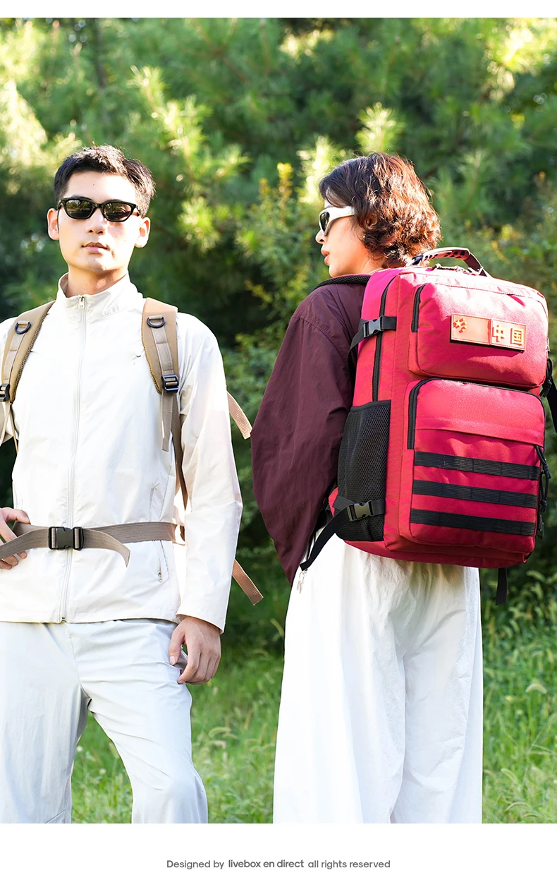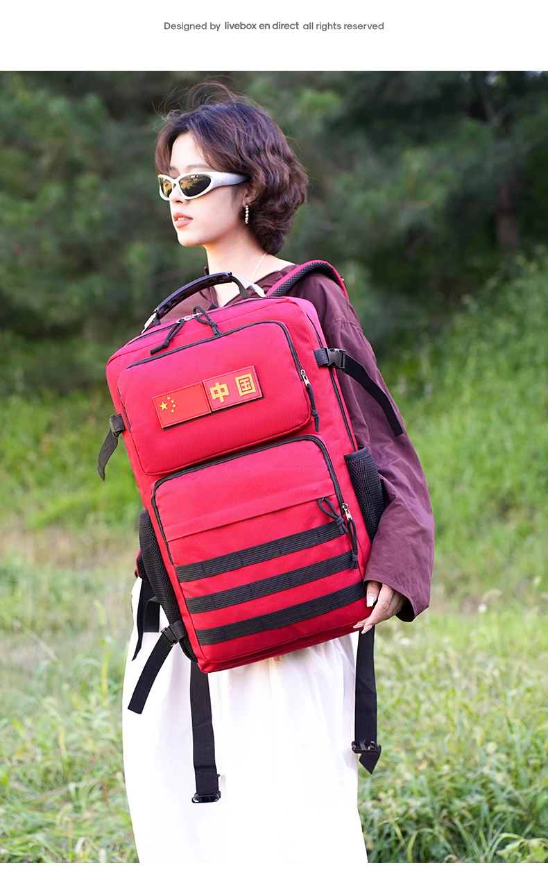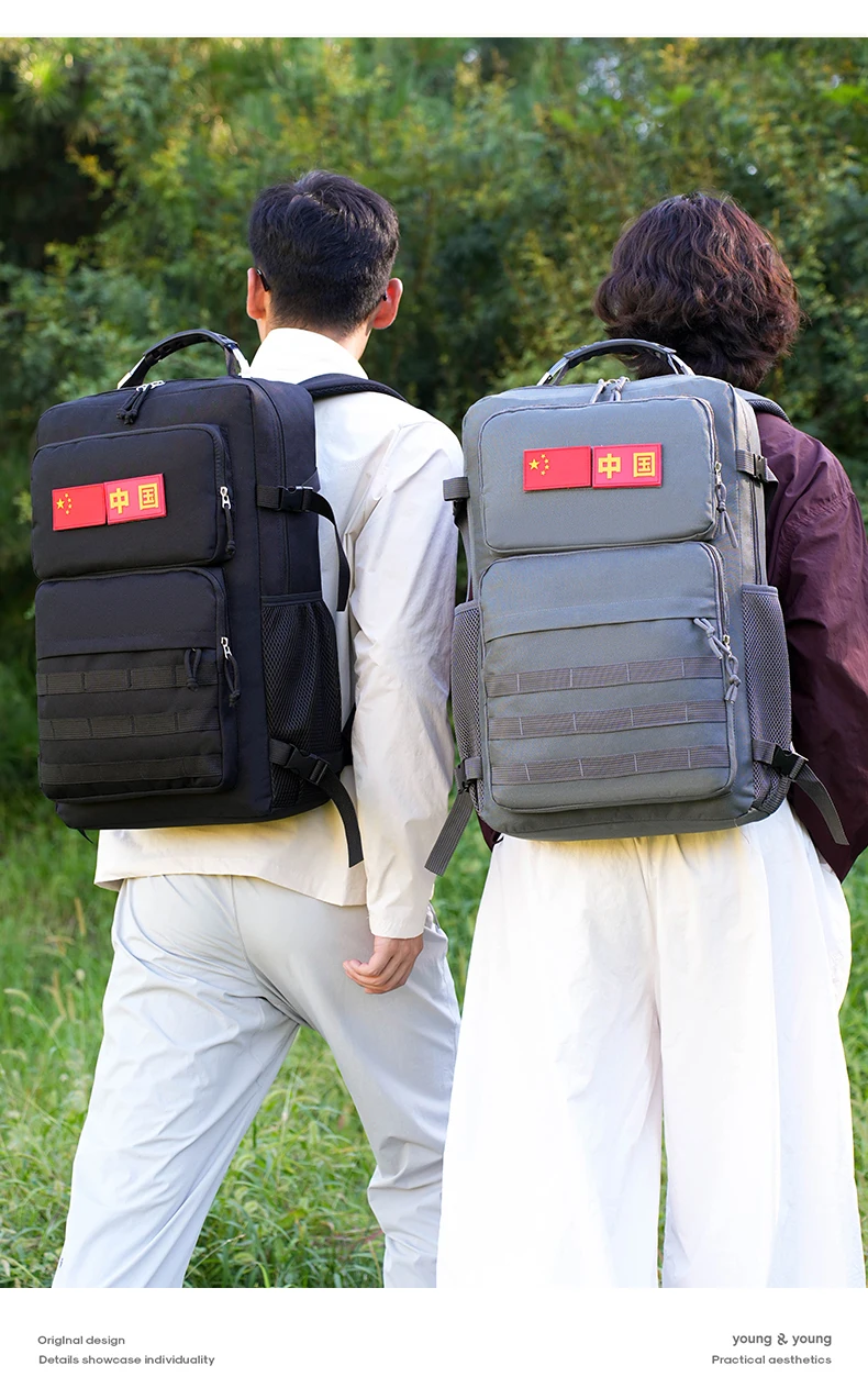 3.Espacio de gran capacidad y carga de zonificación científica: bolsa con cremallera frontal, bolsa con compartimento interior, bolsa de red lateral y bolsa principal de gran capacidad.