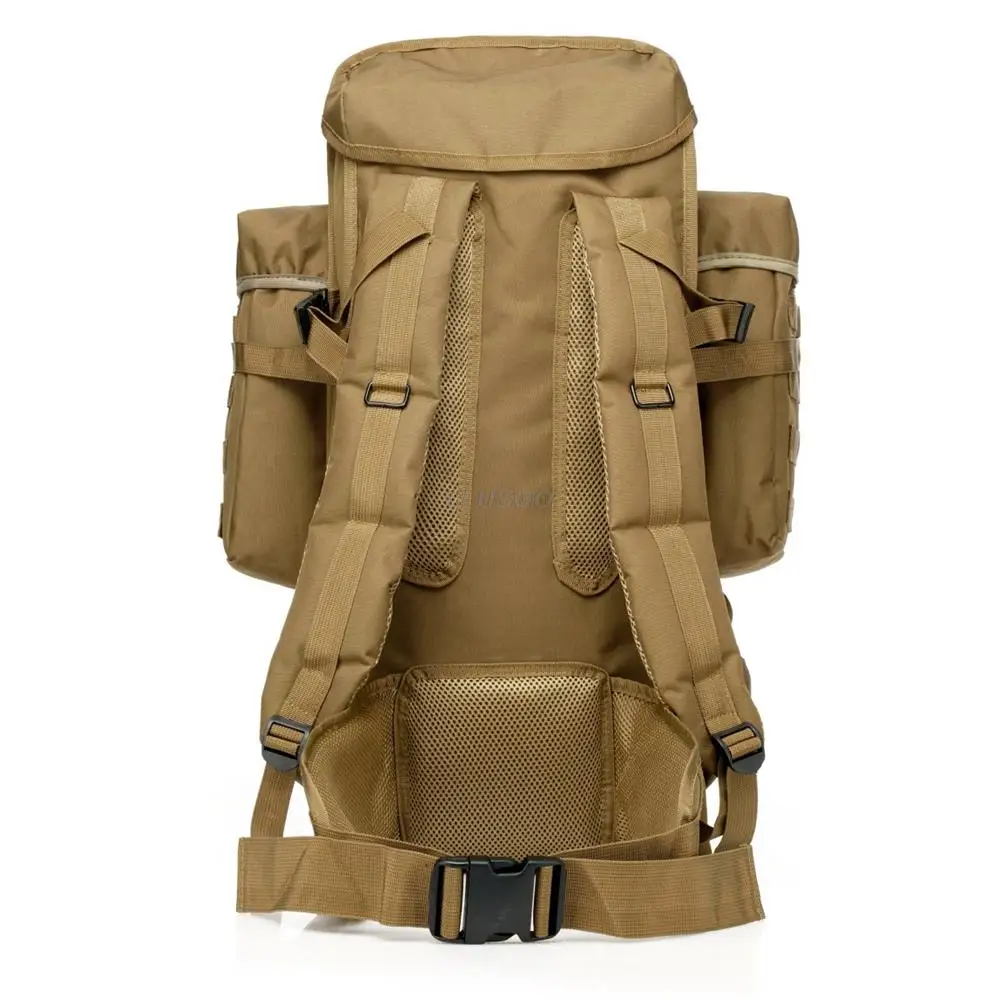 Dos bolsas de diseño Molle en el lateral de la bolsa con el tamaño 24cm (largo) x 13cm (ancho), para guardar botellas de agua y otras piezas de repuesto.