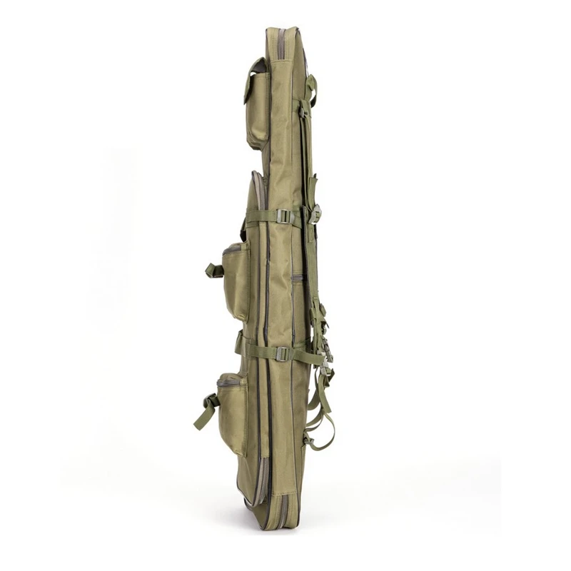 Fabricado con material de nailon de alta densidad impermeable Doble propósito, con correa colgante acolchada de doble hombro y correa de transporte manual, también con cinturón de hombro Sigle 2 compartimentos principales, 4 bolsas más pequeñas para revistas u otros accesorios, 1 compartimento grande con cremallera en la parte posterior. Con una cómoda correa acolchada de doble hombro, correa de mano y un cinturón de fijación La cubierta extendida incorporada del compartimento principal más grande se utiliza para almacenar rifles, el compartimento exterior es capaz de almacenar pistolas o pistolas. Cojín grueso acolchado diseñado para una máxima protección y también para que te sientas cómodo cuando lo llevas en la espalda. Perfecto para la caza y cualquier propósito militar. Notas: 1. Permita 1-3cm (0,4-1,18 ") de diferencia debido a la medición manual, compruebe claramente el tamaño. Gracias. 2. El color del artículo que se muestra en las fotos puede mostrarse ligeramente diferente en el monitor de su ordenador, ya que los monitores no están calibrados de la misma manera.