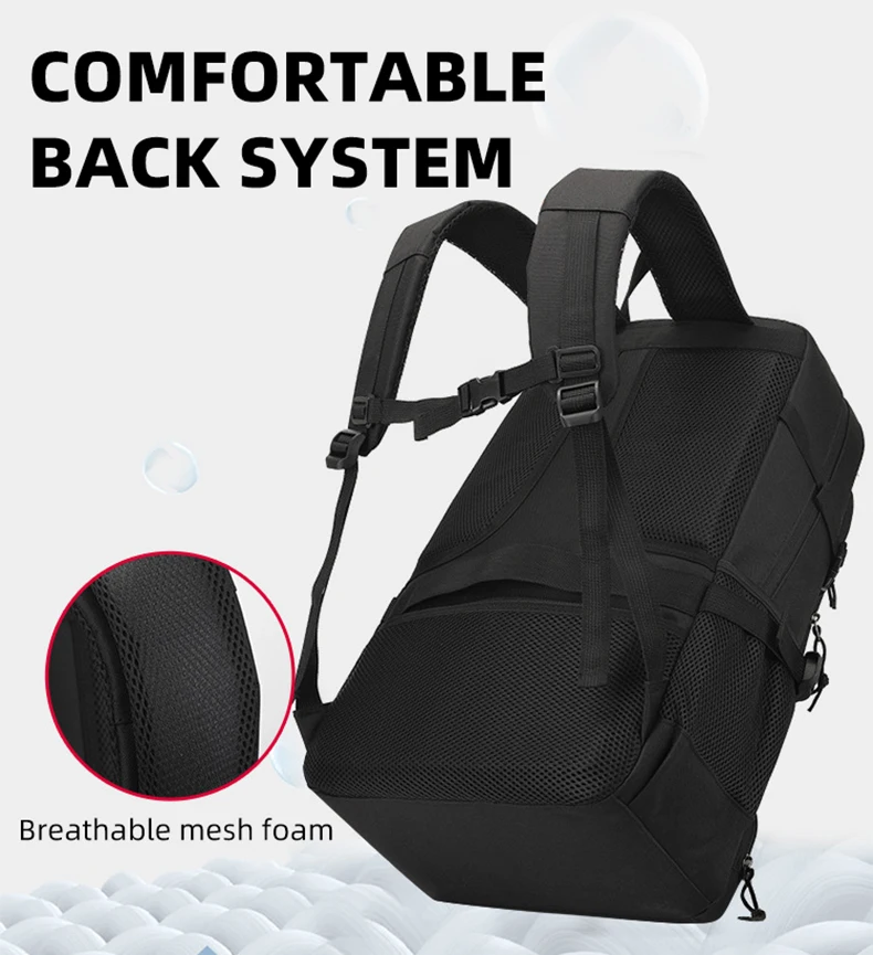 3. Diseñada con una almohadilla trasera ergonómica, transpirable y que absorbe los golpes que distribuye el peso de manera uniforme, esta mochila de escalada se puede transportar durante períodos prolongados sin causar fatiga, adaptada a los contornos del cuerpo humano.