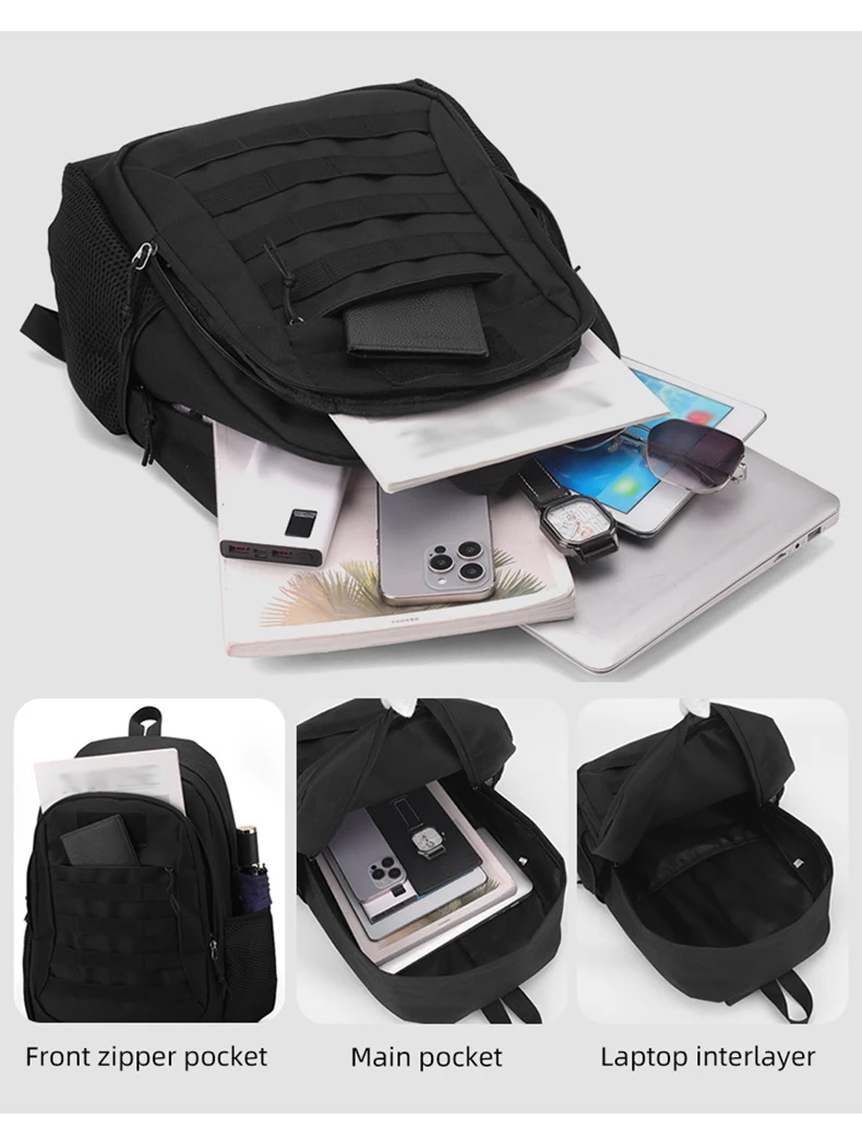 2.Múltiples bolsillos secundarios con cremallera para almacenamiento en zonas.