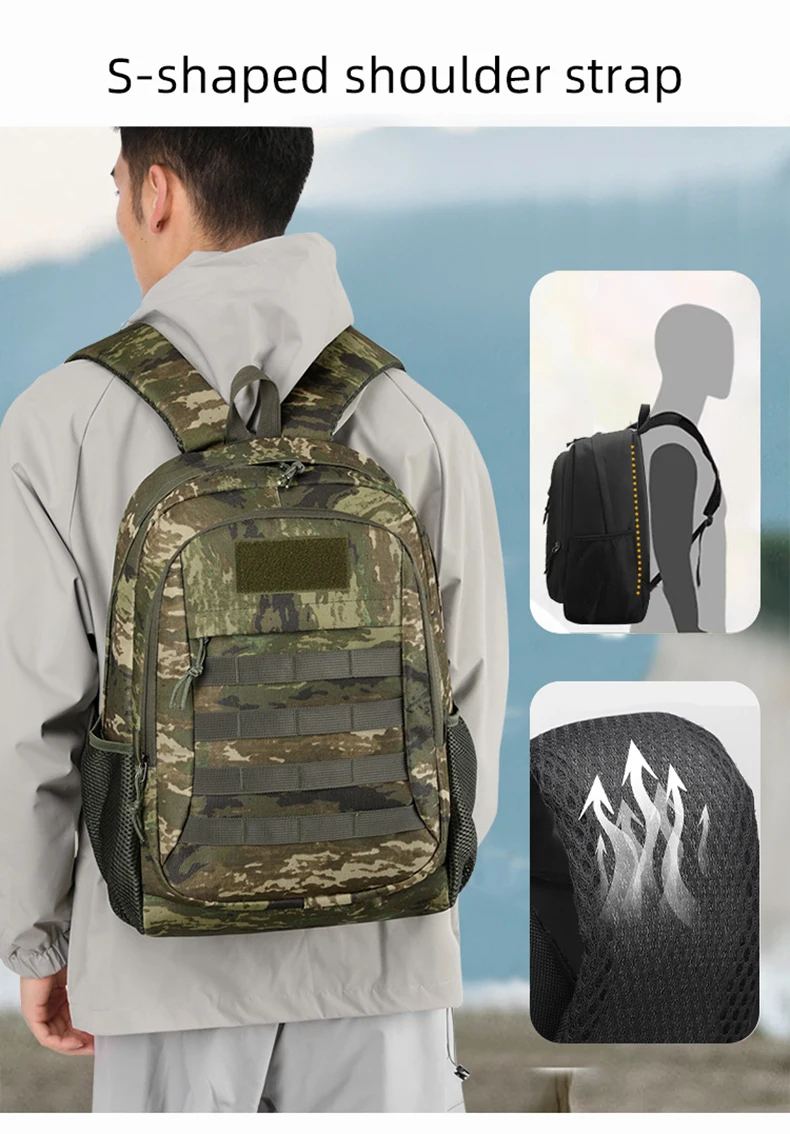 Mochila táctica para exteriores para hombre, bolsa de viaje informal para montañismo, bolso de hombro multifuncional para estudiantes de gran capacidad de camuflaje