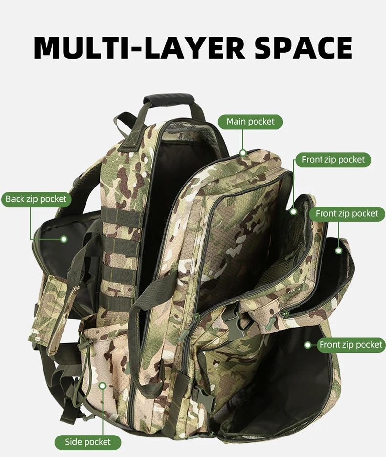 Mochila táctica de escalada con bolsillo para zapatos, senderismo al aire libre, pesca, Camping, caza, mochila de equipaje deportivo de gran capacidad