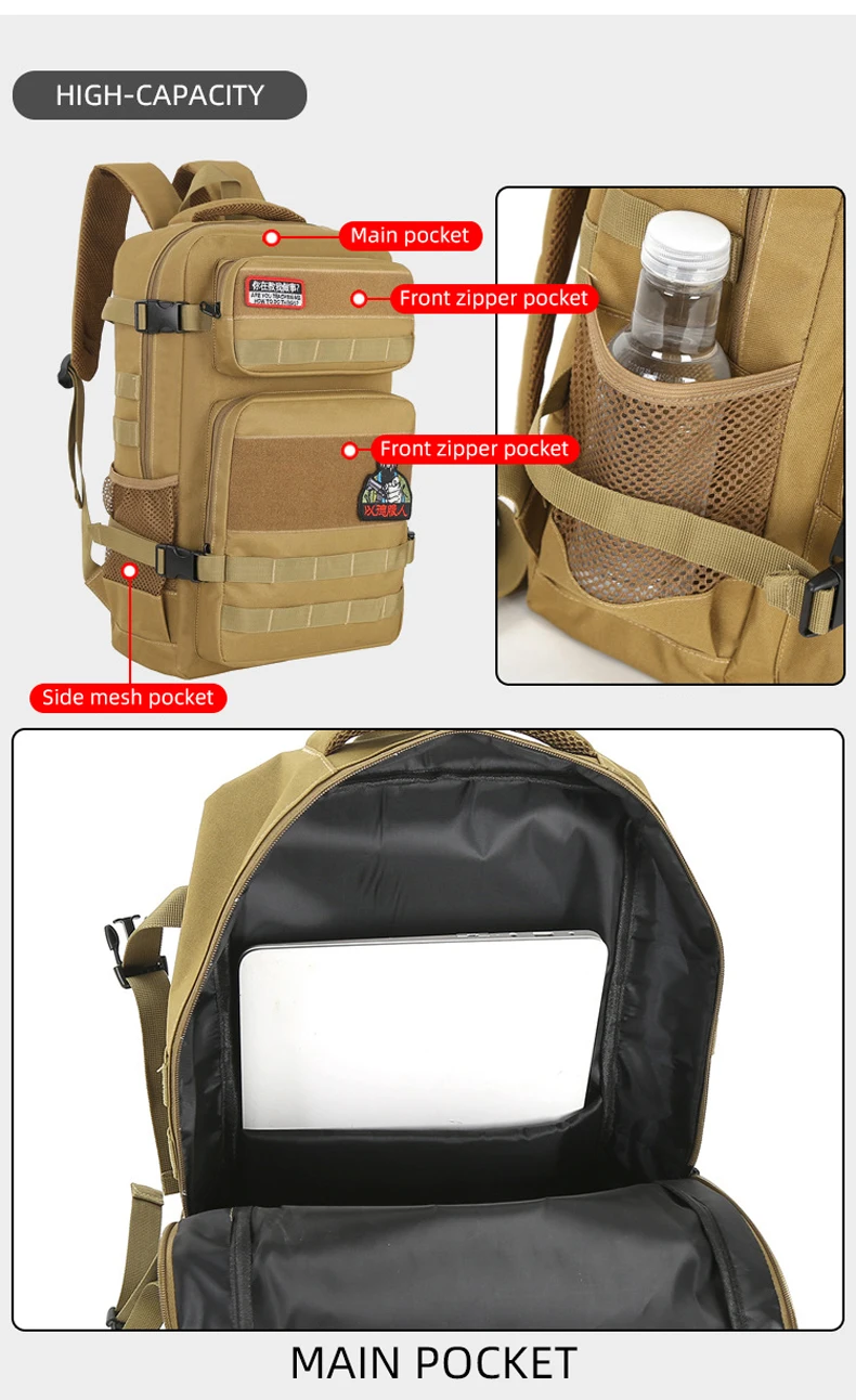 Mochila táctica de escalada para deportes al aire libre, Camping, senderismo, paquete, bolsa de Trekking, sujetadores de gancho y bucle, sistema Molle láser para hombres