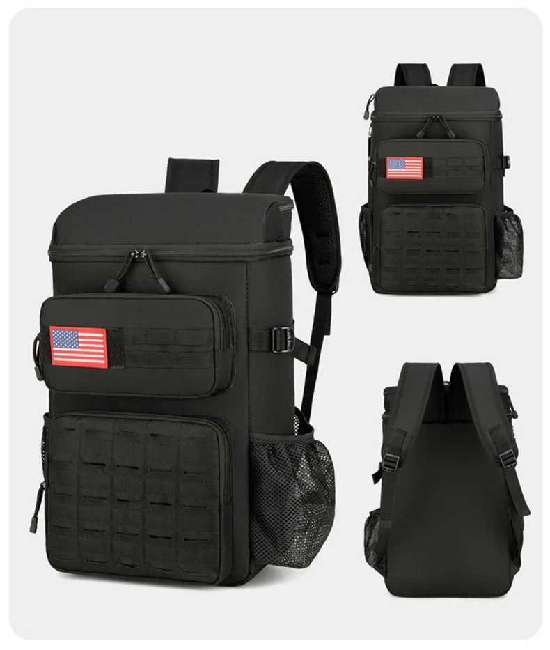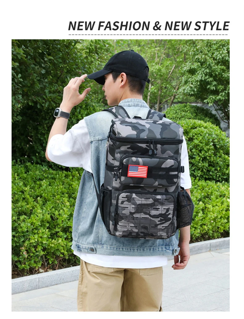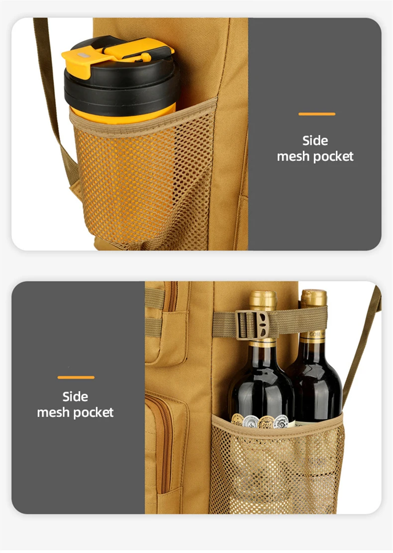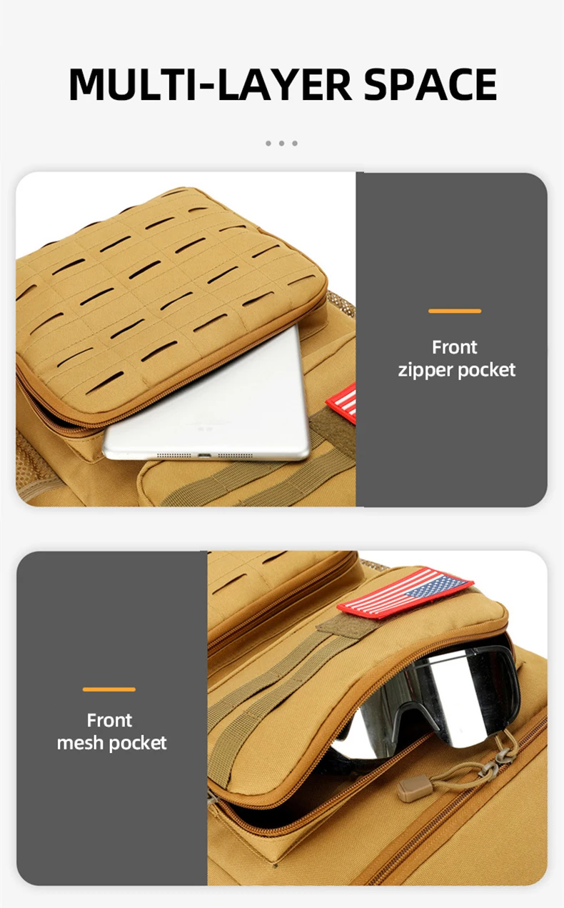 3.Almacenamiento multicapa y razonable: bolsillo frontal con cremallera, bolsillo frontal de malla, bolsillo lateral de malla.