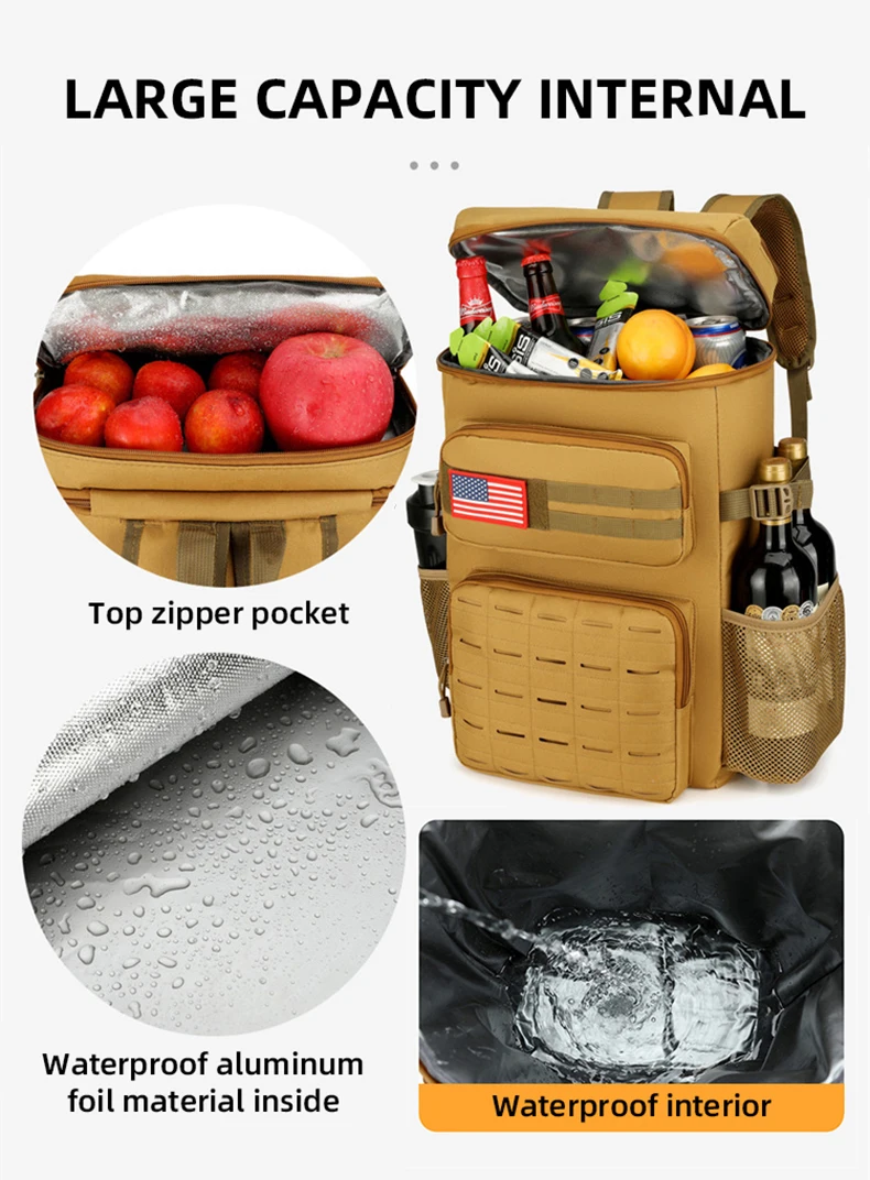 2.Gran capacidad: interior espacioso, bolsillo superior con cremallera para almacenamiento de alimentos.