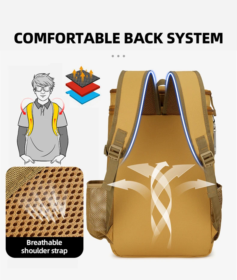 3.Almacenamiento multicapa y razonable: bolsillo frontal con cremallera, bolsillo frontal de malla, bolsillo lateral de malla.