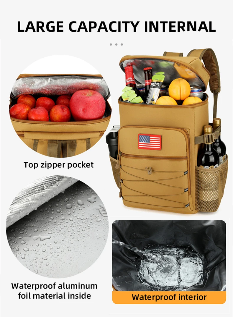 2.Gran capacidad: interior espacioso, bolsillo superior con cremallera para almacenamiento de alimentos.