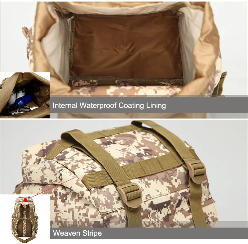 Mochila de asalto táctico militar mochila impermeable Molle del ejército mochilas grandes para senderismo al aire libre Camping HuntingBag