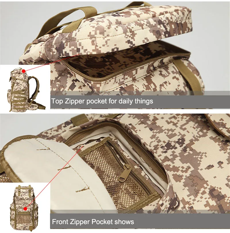 Uso: Mochila multifuncional, hombros, senderismo, pesca, viajes, camping, impermeable, bolsa de deportes al aire libre, mochila militar Molle Tactiacl camuflaje montañismo bolsas de equipaje de viaje