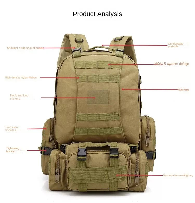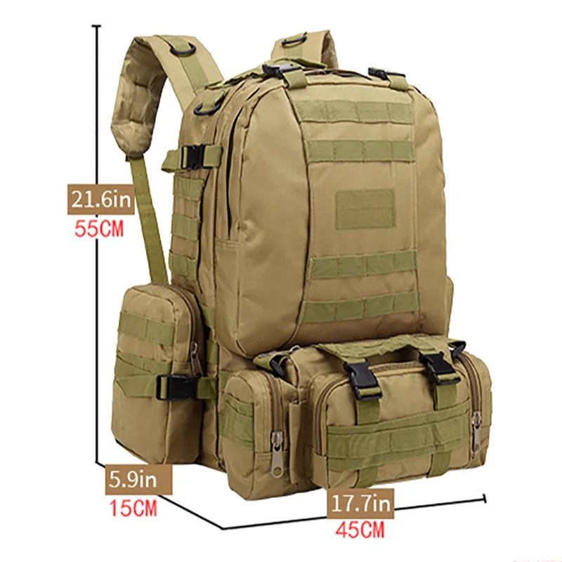Mochila táctica de gran capacidad, bolsa de combinación Molle impermeable, viaje al aire libre, senderismo, Camping, 55L, Nueva