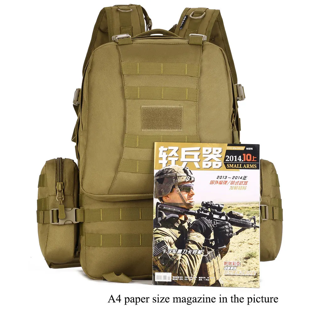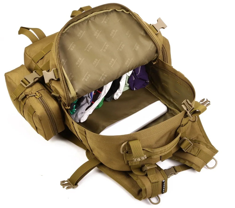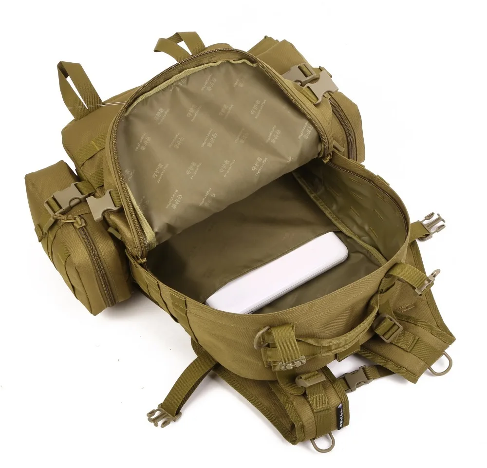 Dimensión: (total):50*45*22(Paquete principal):50*33*22*14(Paquete frontal):33*30*8(Subpaquete):20*14*6(Capacidad): bolsa principal y bolsa delantera 40L, subpaquete 4.5Lx2, un total de 50LMaterial: nailonForro: revestimiento impermeable + algodón mercerizadoColores: BK/CB/DD/JD/CP/ACUPeso: 1,85 kgVolumen: Puede contener ordenadores portátiles de 16 pulgadas, 20 camisetas y otros artículos de gran tamaño para viajes al aire libre.Función: MochilaGénero: Neutral/Hombres y mujeres