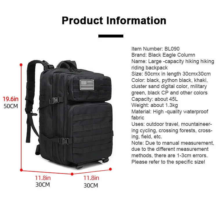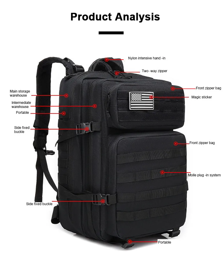 Mochila táctica militar para hombres, bolsas impermeables de gran capacidad, paquete de asalto multifuncional para acampar, Trekking, mochilas para hombres