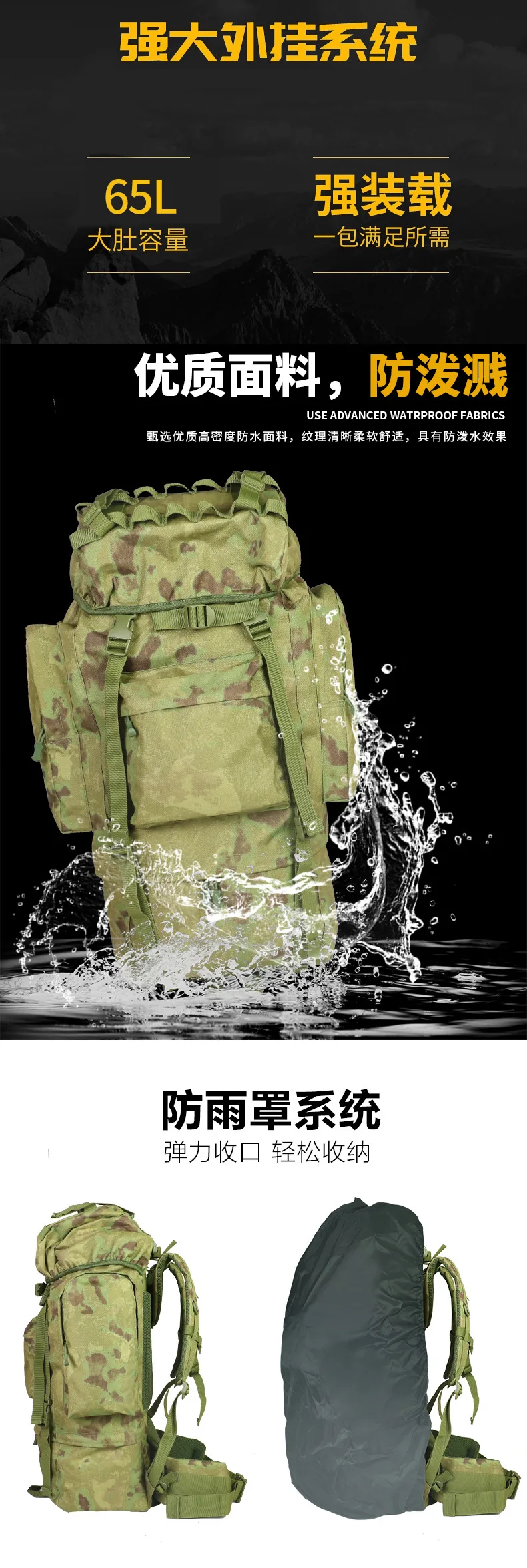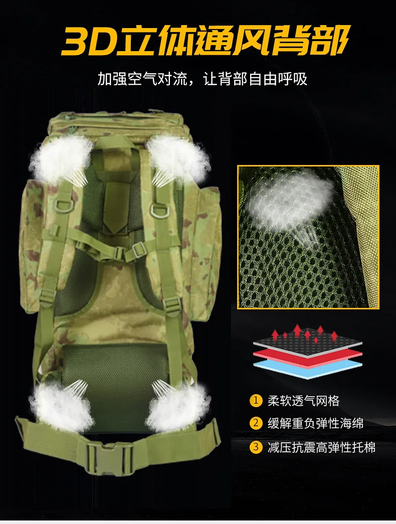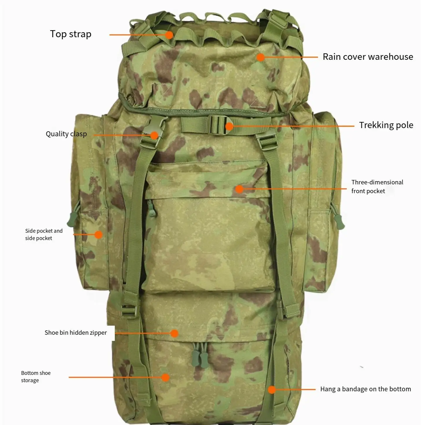 Mochila táctica de gran capacidad multifuncional, bolsa táctica de senderismo, ventilador militar al aire libre, mochila táctica de camuflaje, 65L