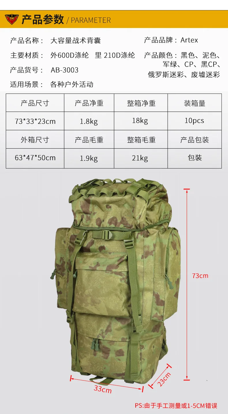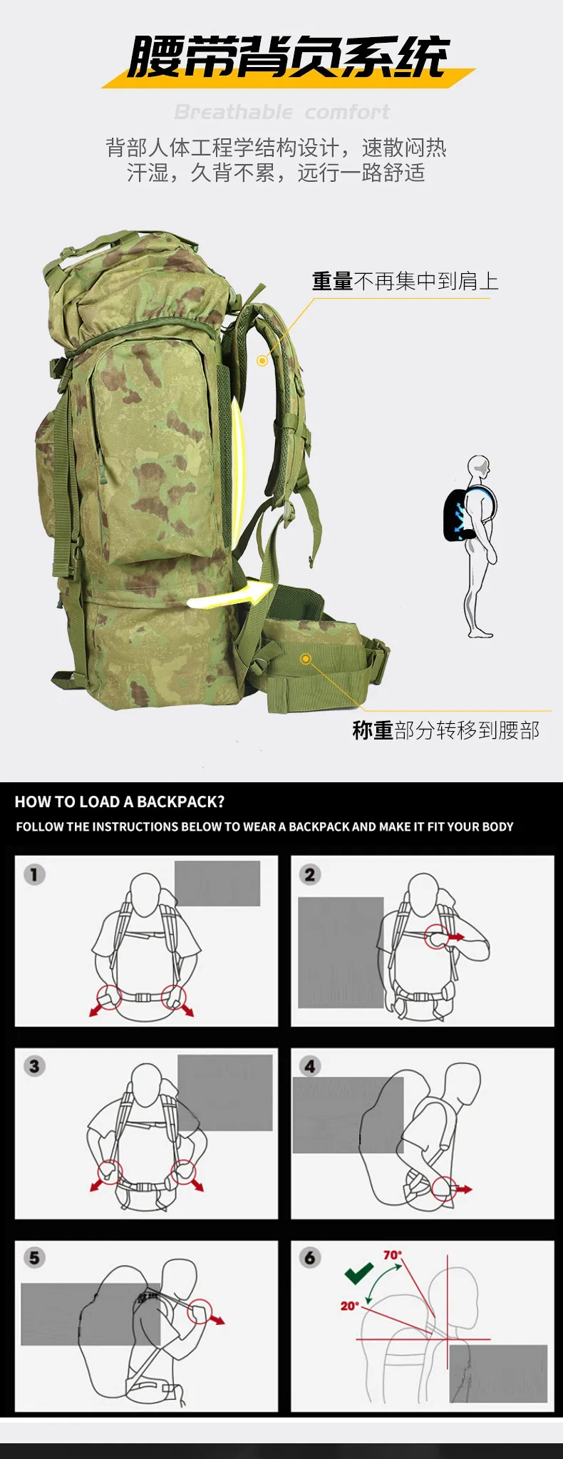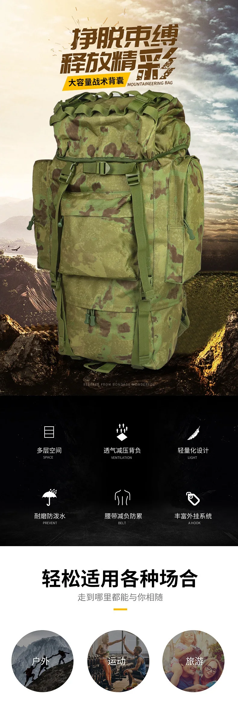 Mochila táctica de gran capacidad multifuncional, bolsa táctica de senderismo, ventilador militar al aire libre, mochila táctica de camuflaje, 65L