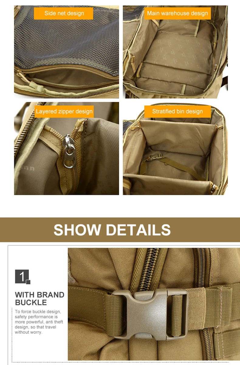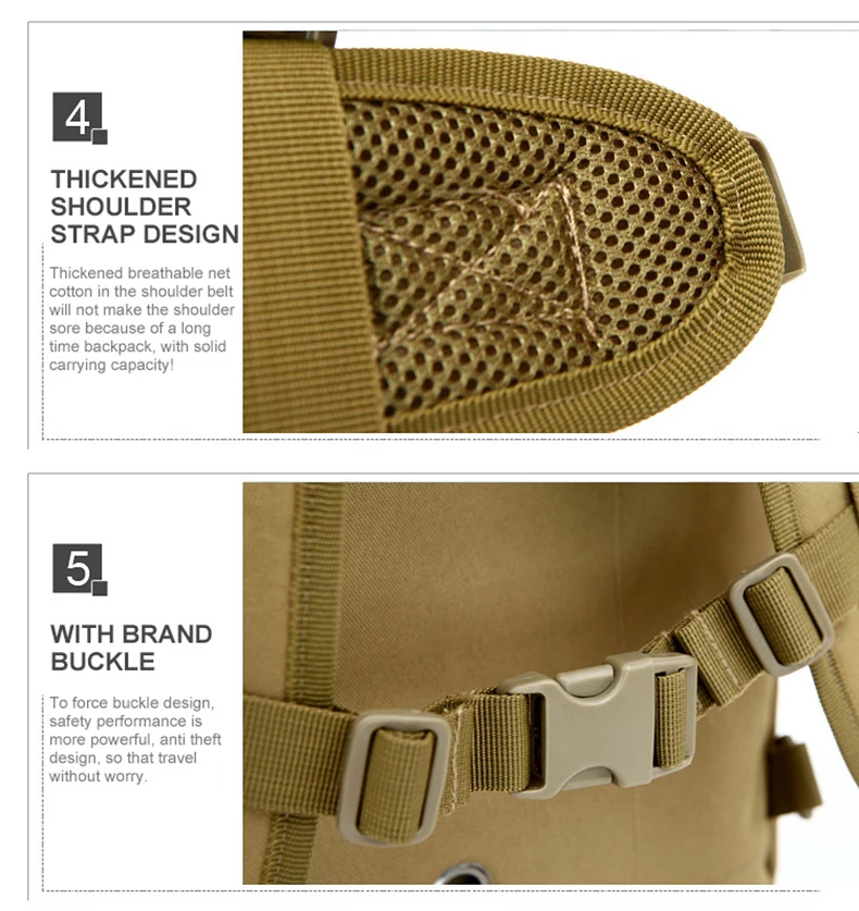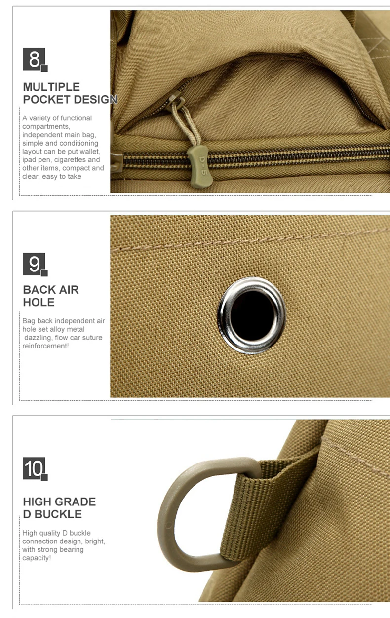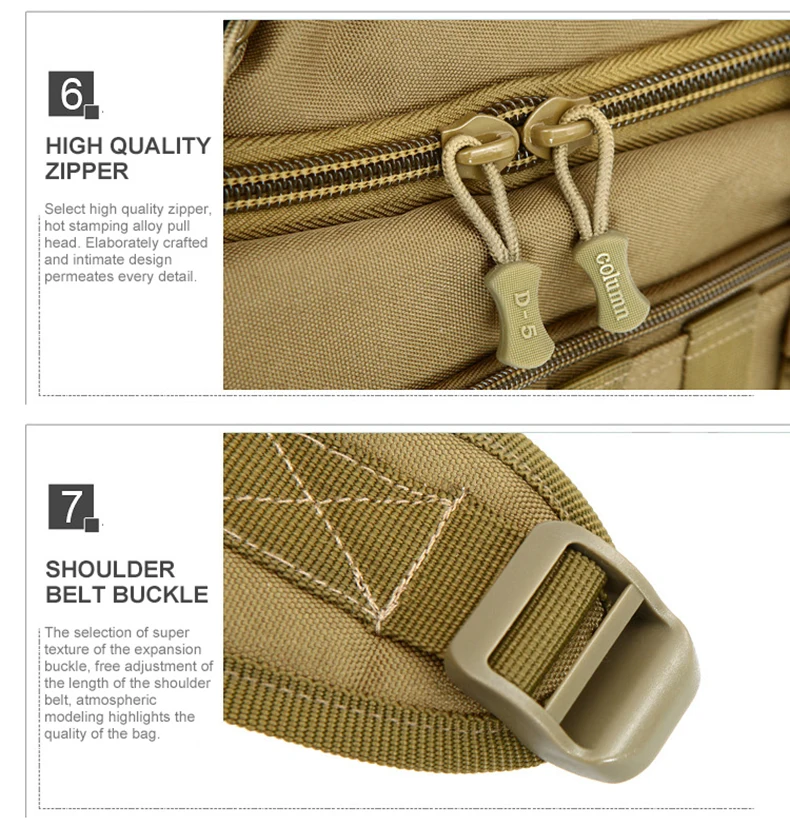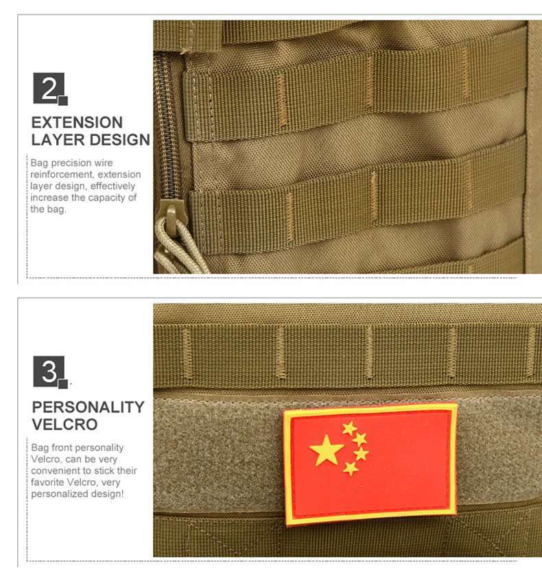 Uso: Bolso de hombro táctico, bolso cruzado con sistema Molle, mochila de escalada