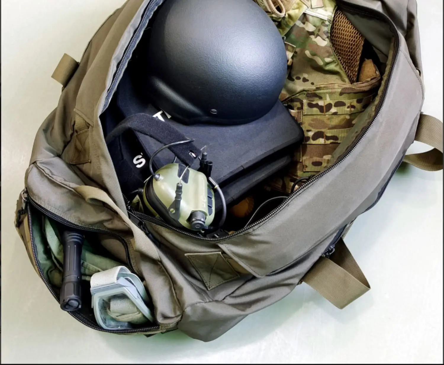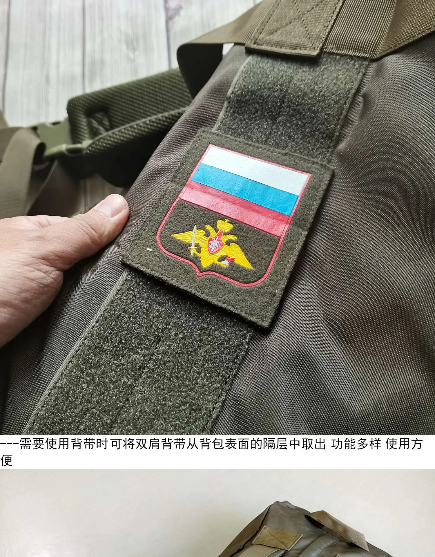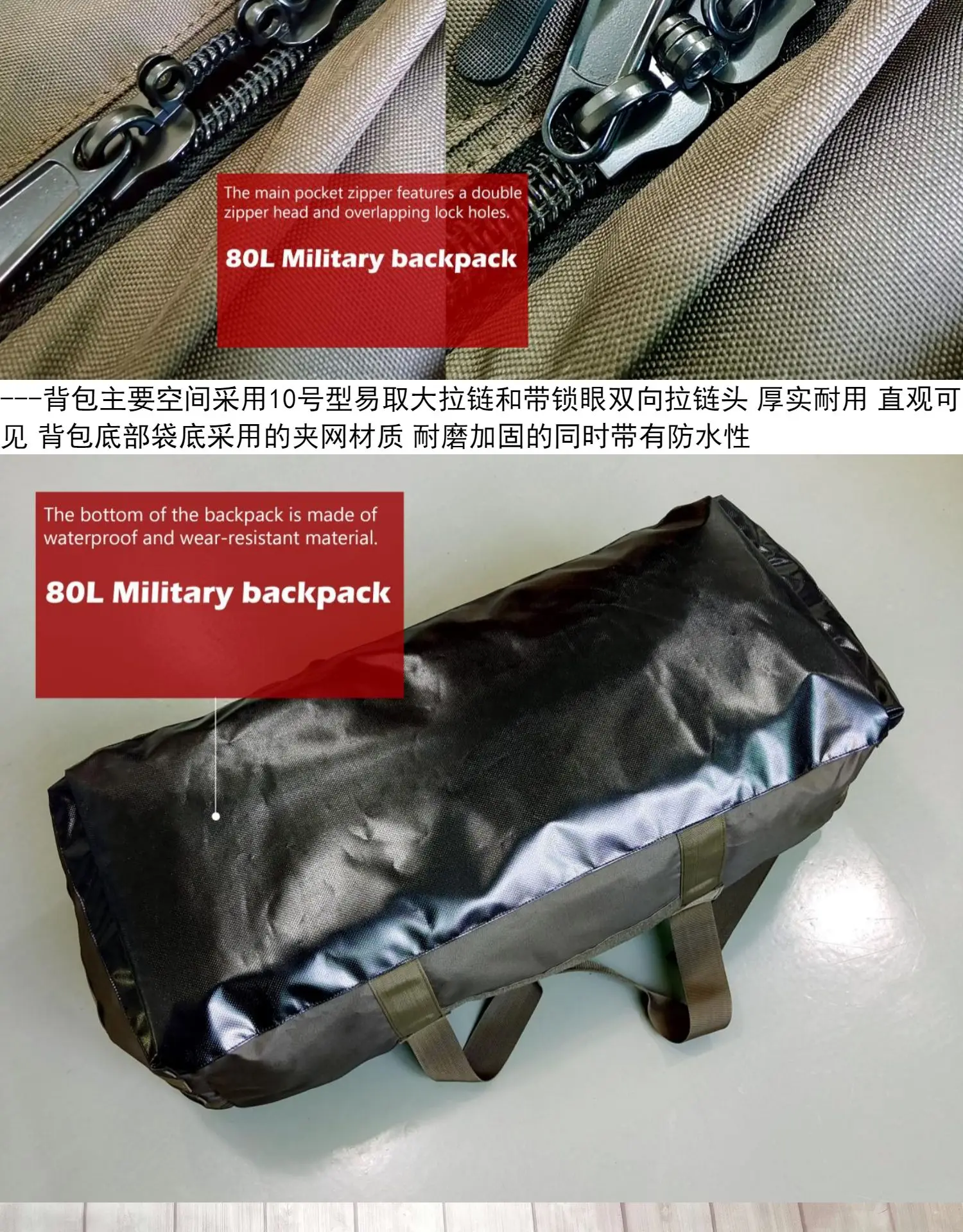 Gran CAPACIDAD DE 80L (se puede llevar en ambos hombros), el material principal es 500D tela impermeable e ignífuga